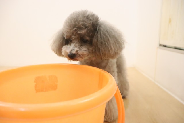 怖い物ではないと分かるとバケツの上にアゴを乗せることが出来たね♪