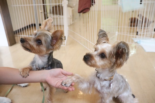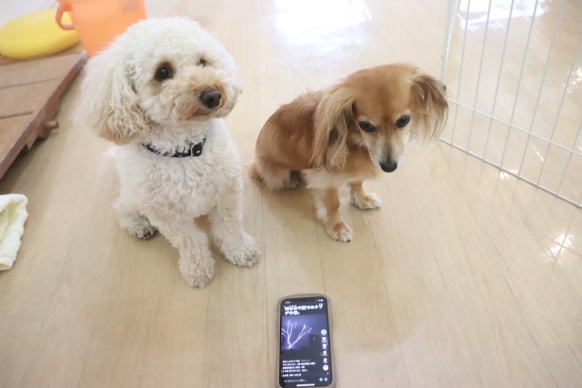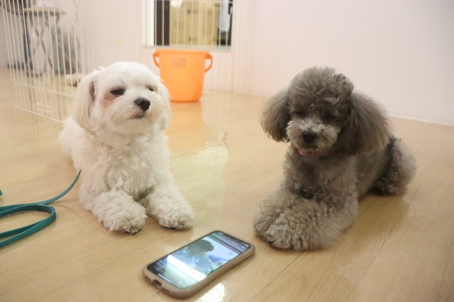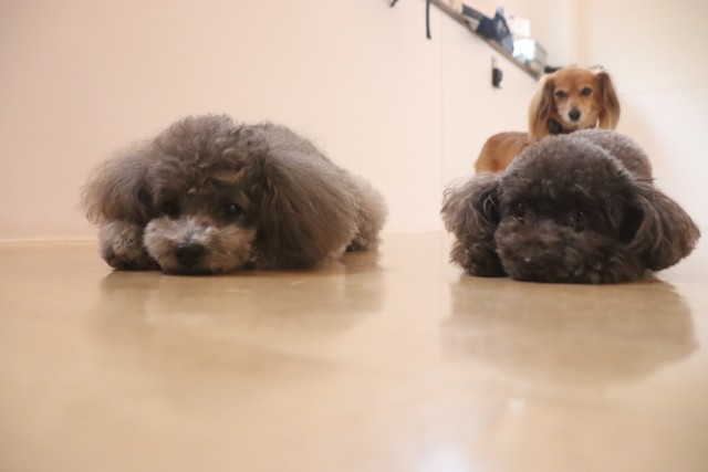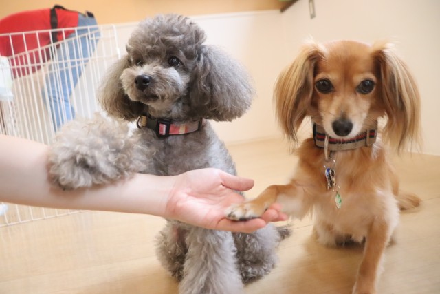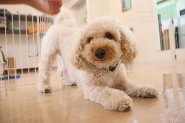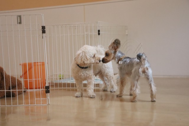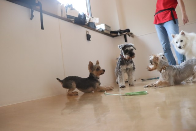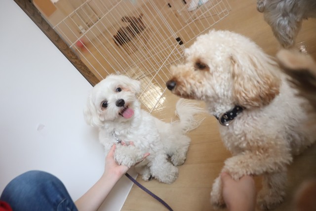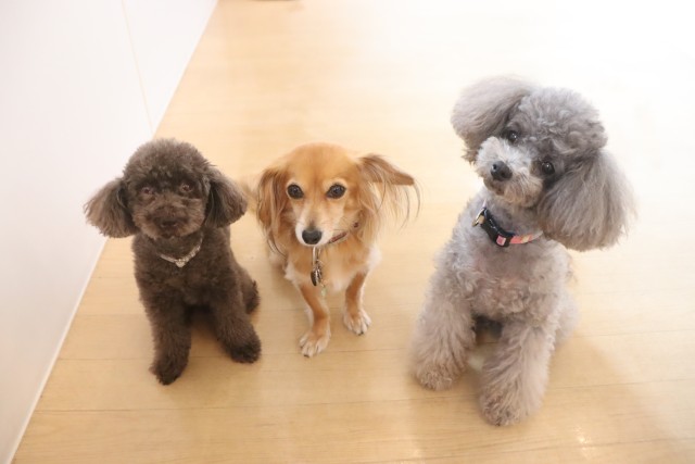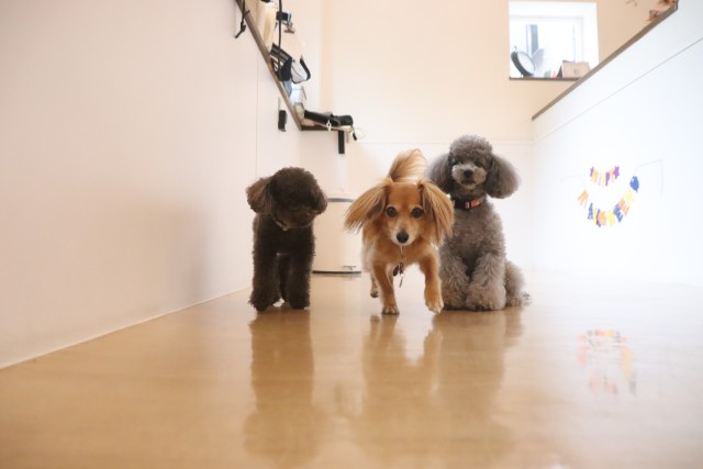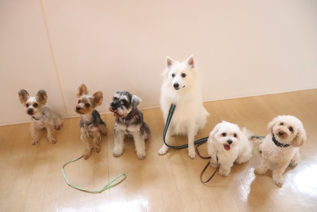 今日の保育園生は、トイプードルのココちゃん、アンジュちゃん、ミニチュアシュナウザーのレイアちゃん、スピッツのパブロンくん、ヨークシャーテリアのノアくん、ルイくん、マルチーズのことぶきくん、マルチーズ×トイプードルの晴くん、チワワ×ミニチュアダックスフンドのらいくんです!