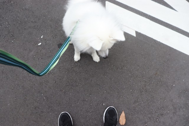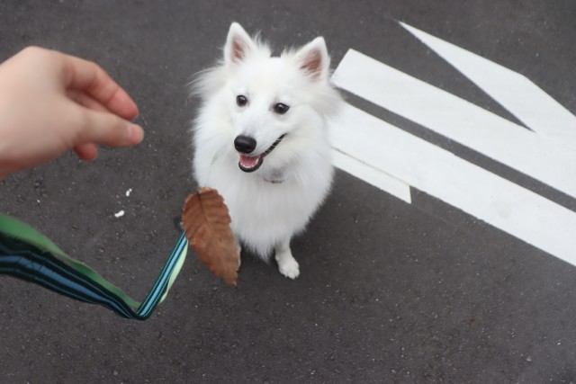 ヒラヒラと落ちてくる枯葉を咥えることなく、お利口さんでした💮