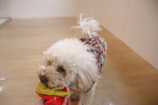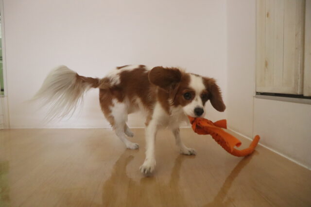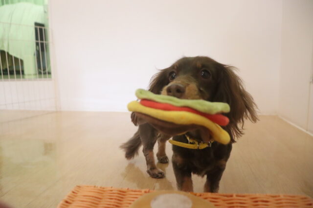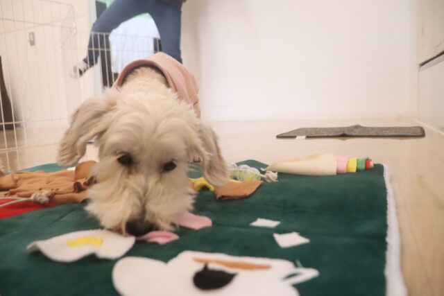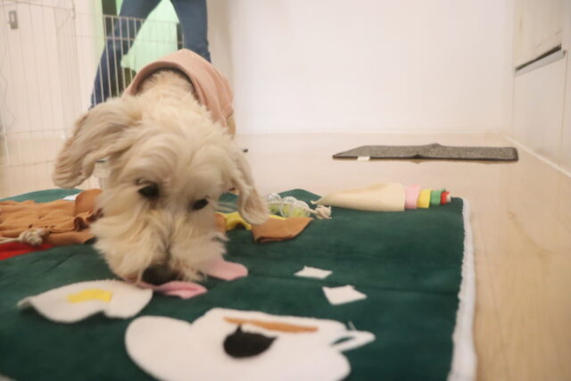 鼻を使い、隠れているフードを次々と見つけることが出来ましたよ♪たくさん見つけられ満足そうでした💗