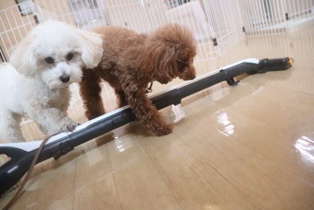 最後は2頭仲良く掃除機に近づき、触ったり乗り越えたりと距離を縮めることが出来ましたよ💮