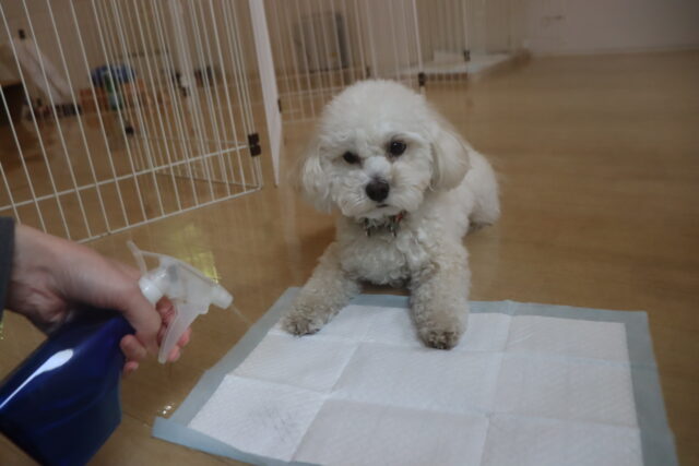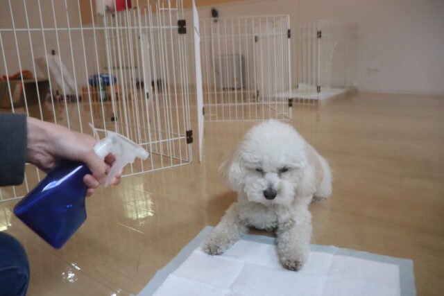 陽向くんは霧吹きで物慣れを行いました!不思議そうに見つめる陽向くん👀