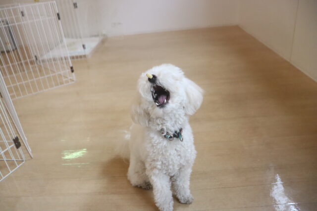 パブロンくんはフードキャッチの練習をしました!よーくフードを見ていましたが、