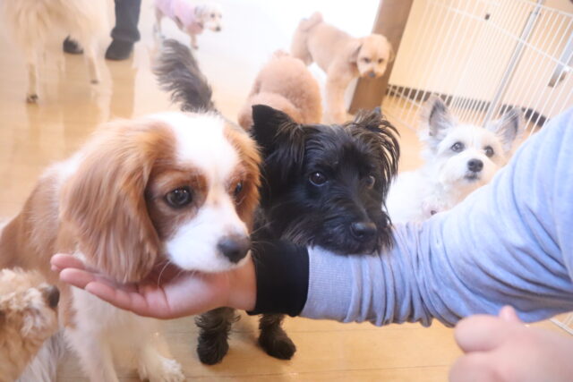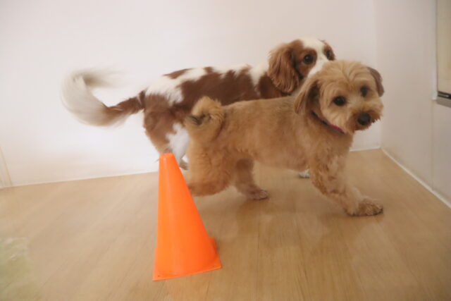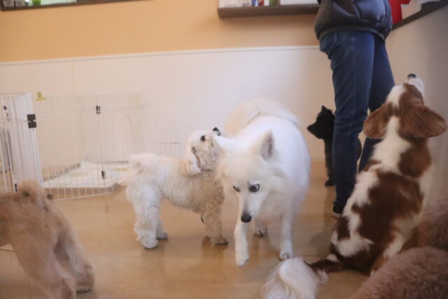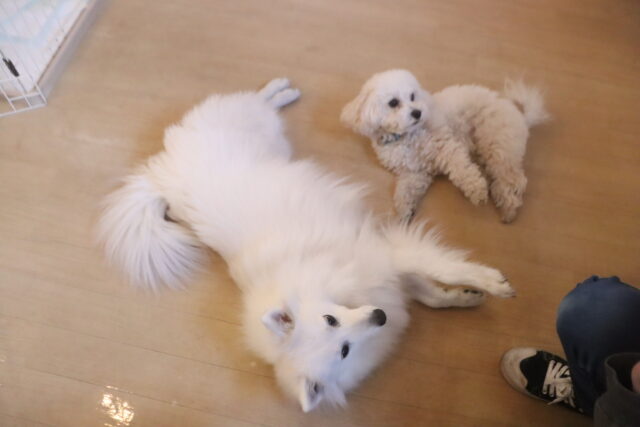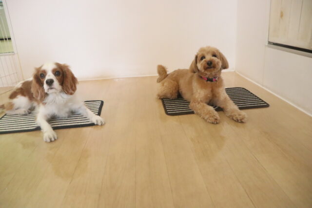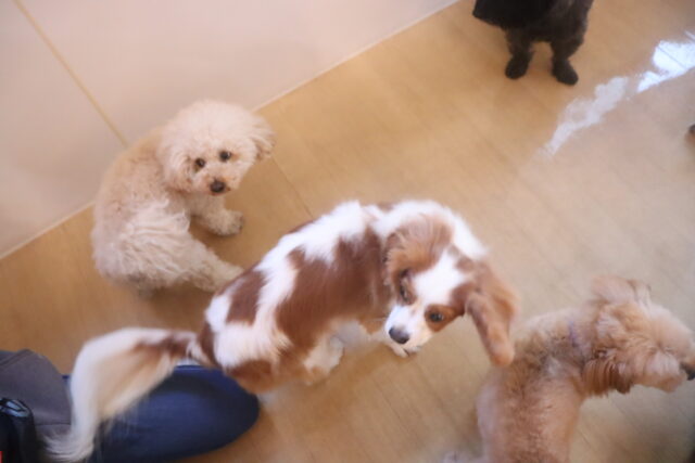 Day預かりには、ポメラニアン×トイプードルのエマちゃんと仙川店の保育園生のキャバリアキングチャールズスパニエルのアルくんが遊びに来てくれました!