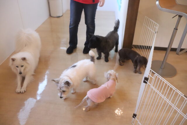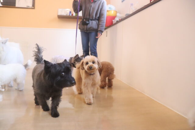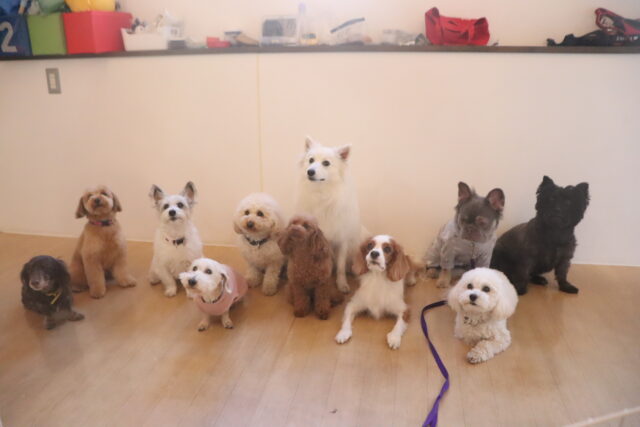 今日の保育園生は、マルチーズ×トイプードルの陽向くんと晴くん、ワイヤーへアードミニチュアダックスフンドの小梅ちゃん、ケアーンテリアのノンちゃん、フレンチブルドックのハイちゃん、ジャックラッセルテリアのソフィちゃん、ミニチュアダックスフンドのミーシャちゃん、トイプードルのくうちゃん、日本スピッツのパブロンくんです!