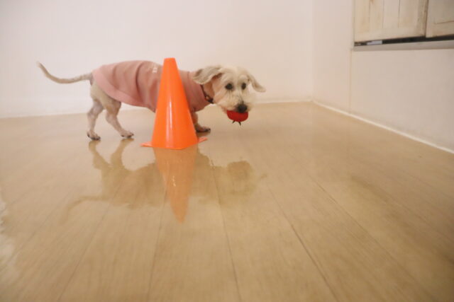 レトリーブ練習では”コーン回って”を追加してみましたが、落とすことなく持って来て…