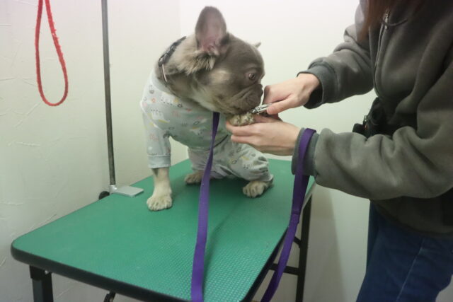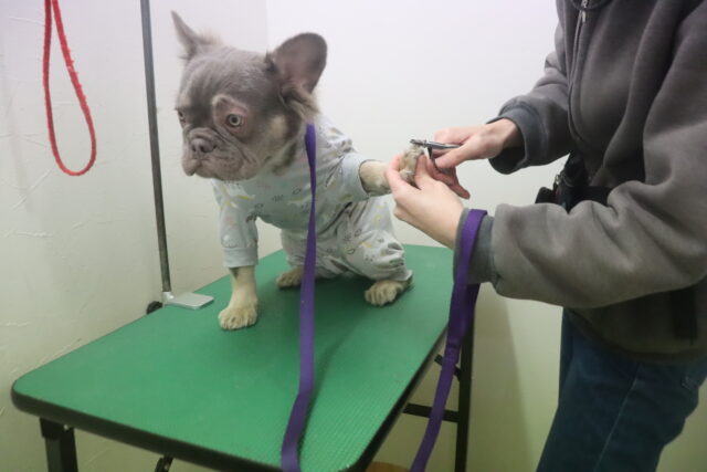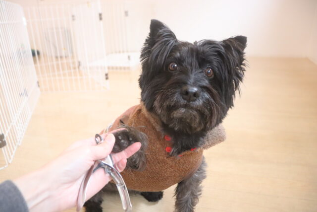 ノンちゃんはケア練習を頑張りました!爪切りは苦手なのか緊張気味の様子💦