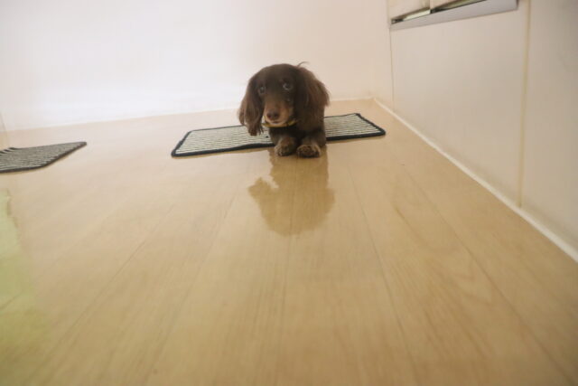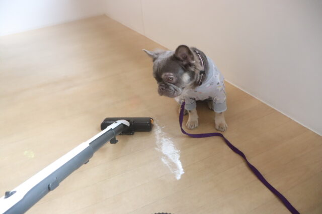 陽向くんと一緒に掃除機慣れも行いました!2頭とも緊張気味の様子💦