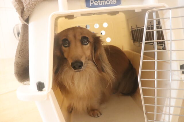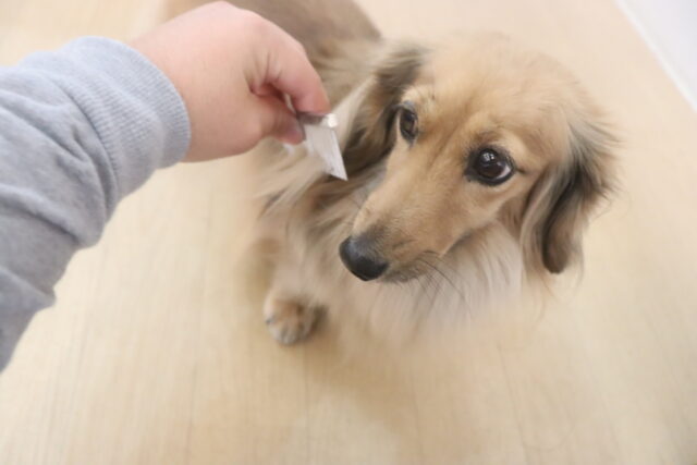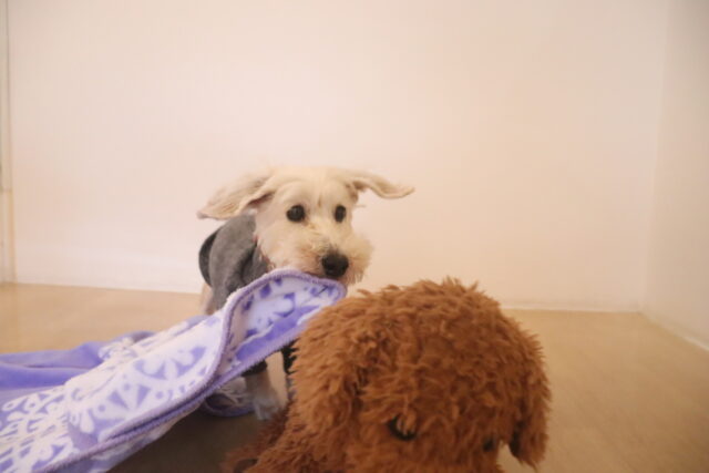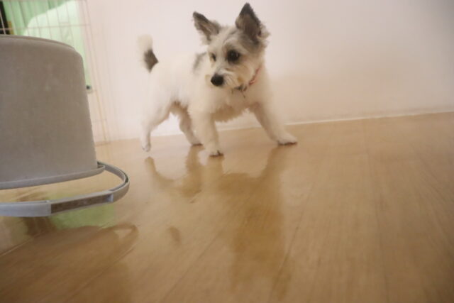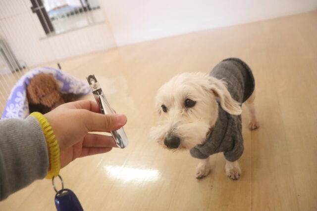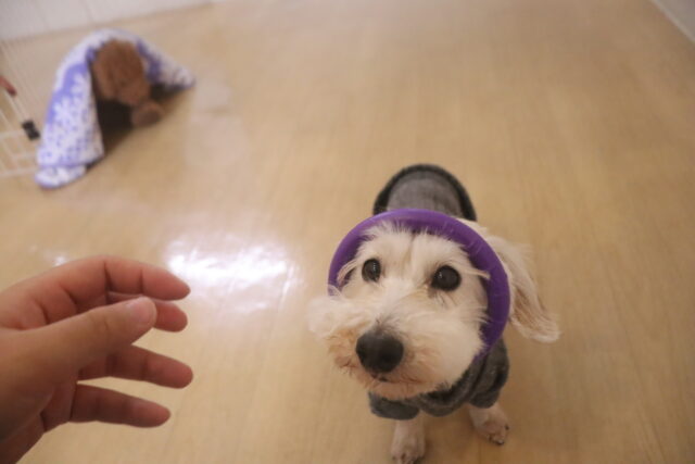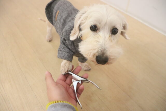 爪切りとコームを使ったケア練習では一気にテンションが下がってしまう小梅ちゃん😣
