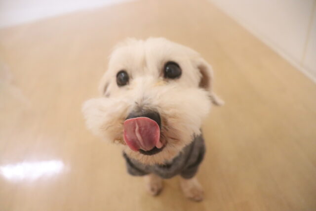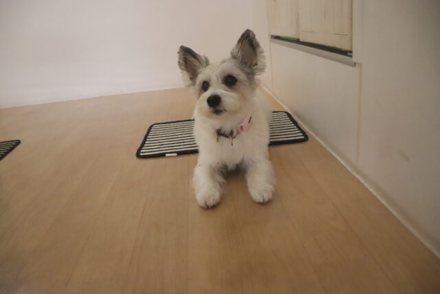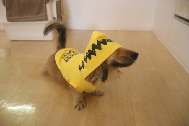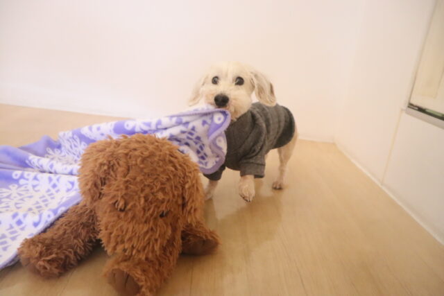 ラテちゃんは洋服慣れをしています!まだまだ固まってしまう事はありますが…