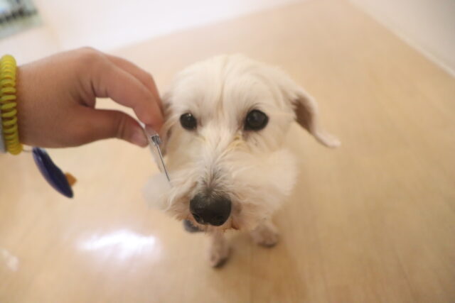 終始緊張気味でしたが最後まで取り組んでくれましたよ!いろいろな物に慣れていこうね👍