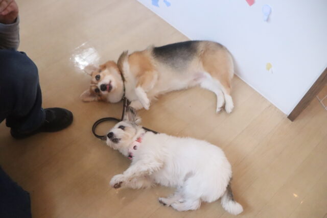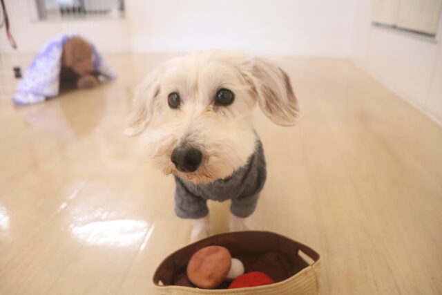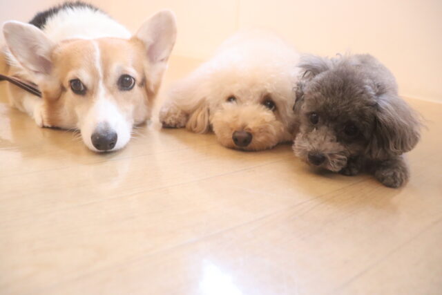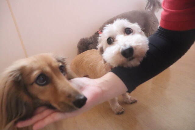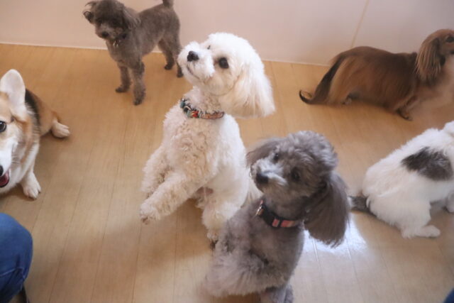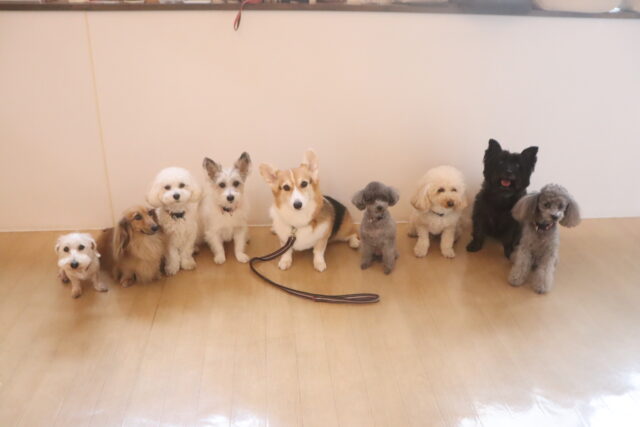 今日の保育園生は、ワイヤーへアードミニチュアダックスフンドの小梅ちゃん、マルチーズ×トイプードルの陽向くんと晴くん、ケアーンテリアのノンちゃん、ジャックラッセルテリアのソフィちゃん、ウェルシュコーギーペンブロークのサクラちゃん、カニンヘンダックスフンドのラテちゃん、トイプードルのモモちゃんです!