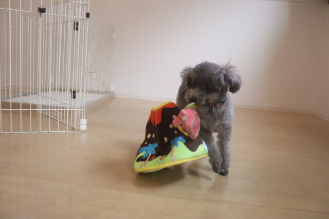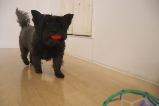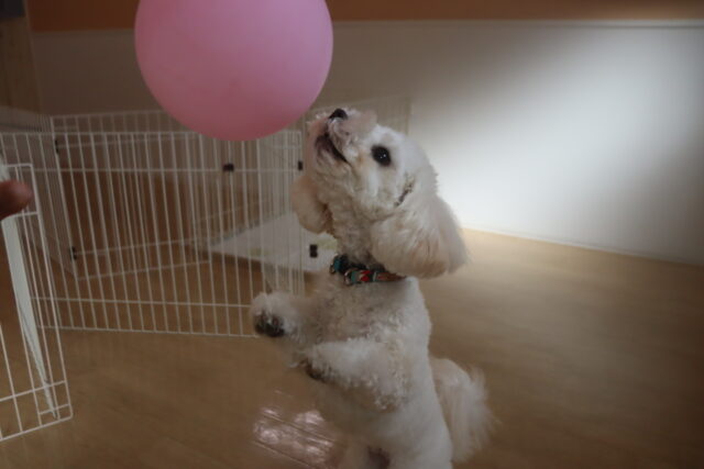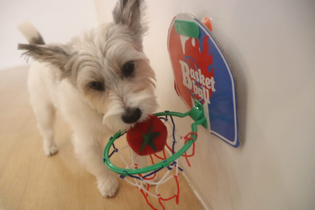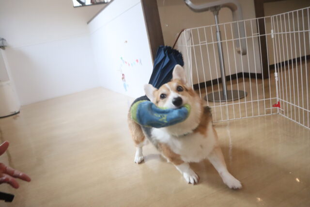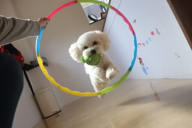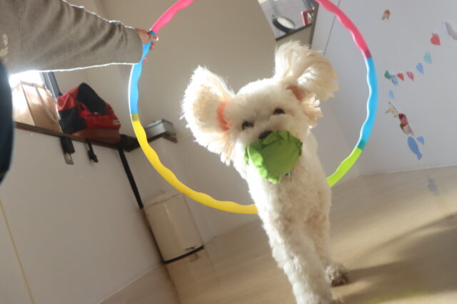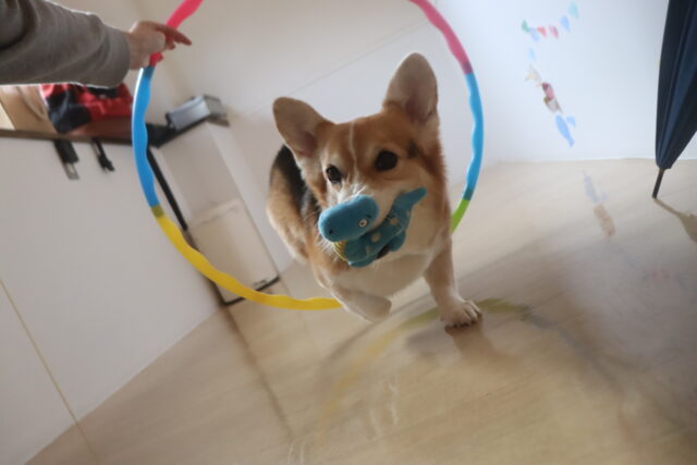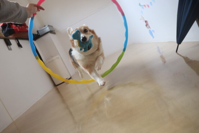 陽向くんはおもちゃを咥えてのジャンプに挑戦!