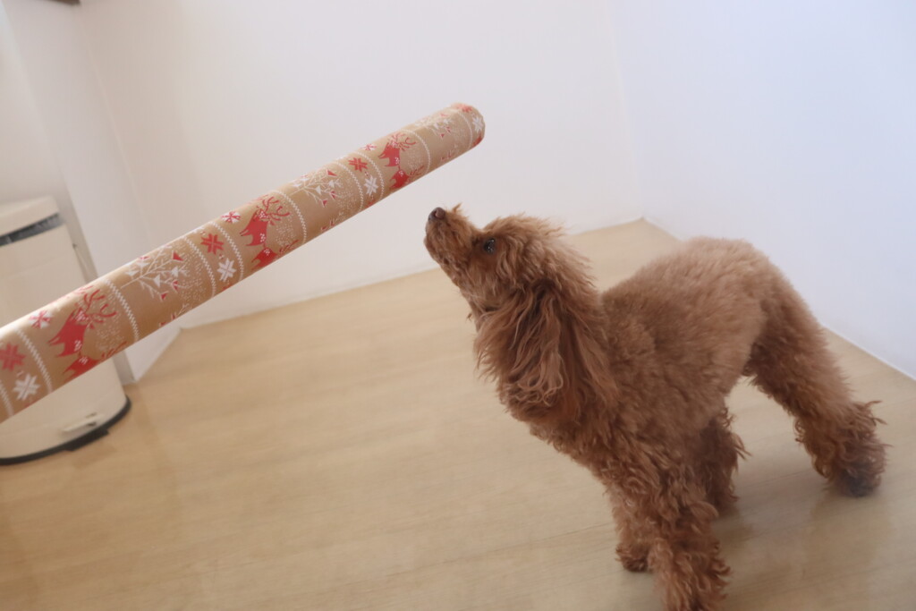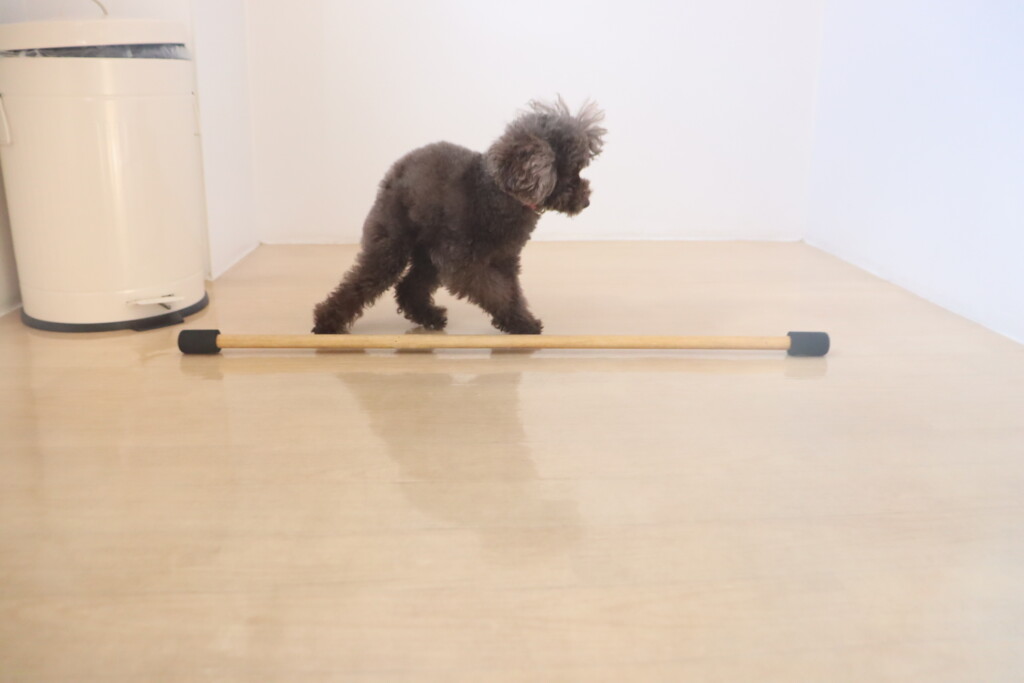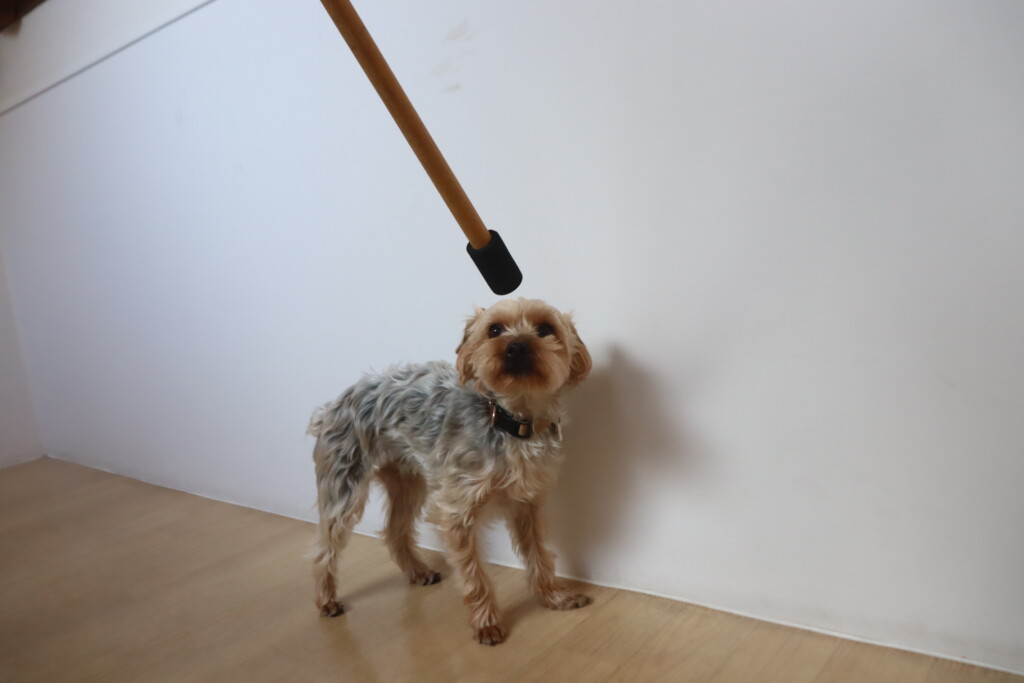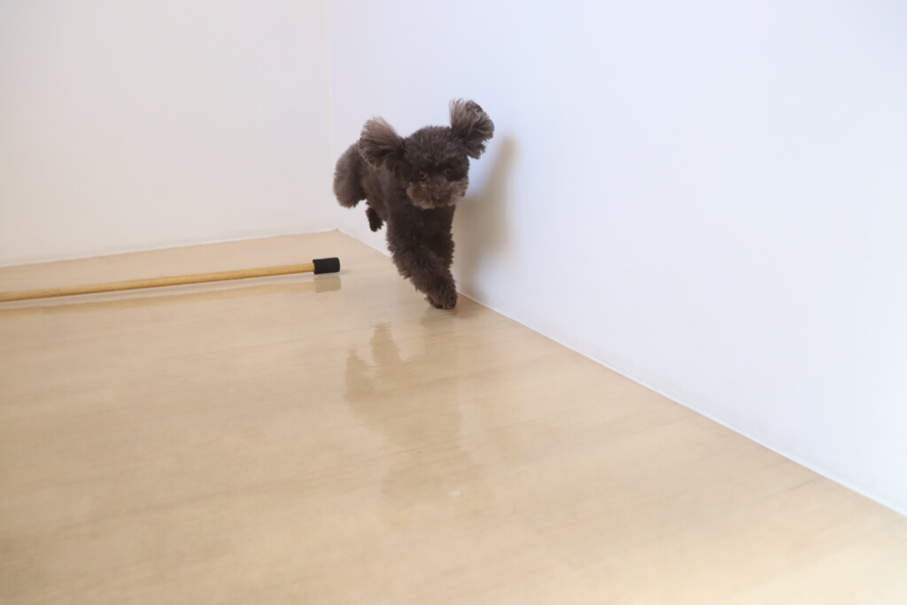 ココちゃんも長い棒は苦手なようで転がって迫ってくると素早い早足で逃走💨