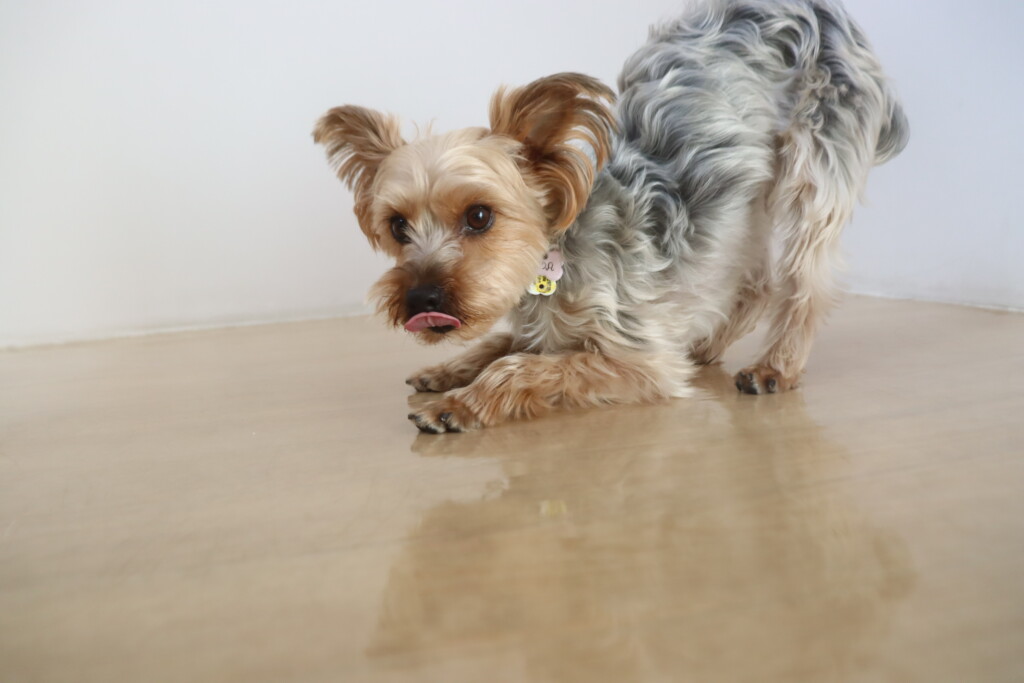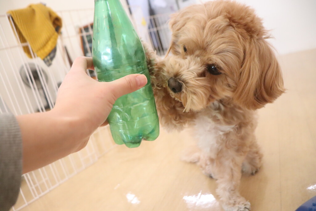 ブラッシングスプレーを使ったお手入れ練習ではスプレーを向けると落ち込み…