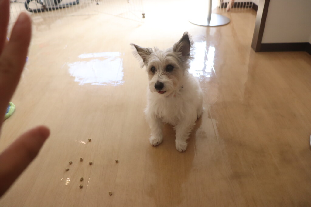 大好きなフードを使ったマテの練習では、しっかりと気持ちを切り替えて真面目に取り組んでくれましたよ♪