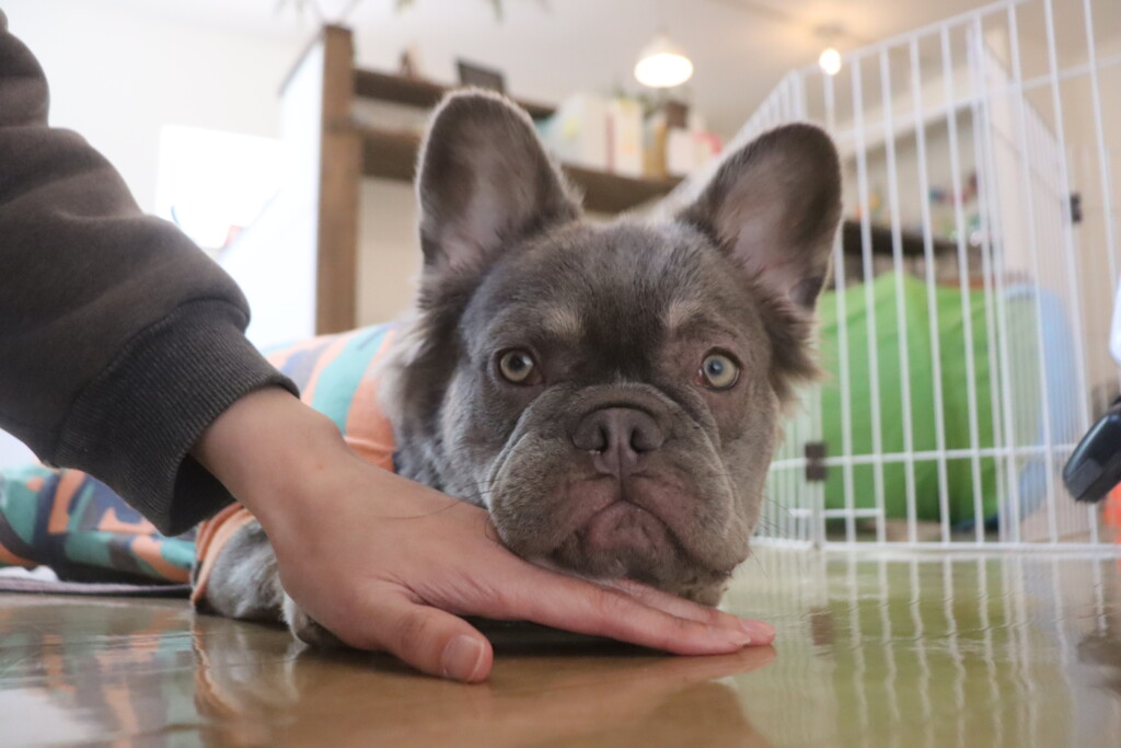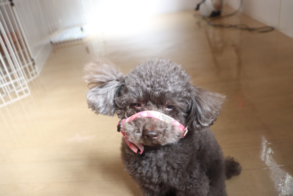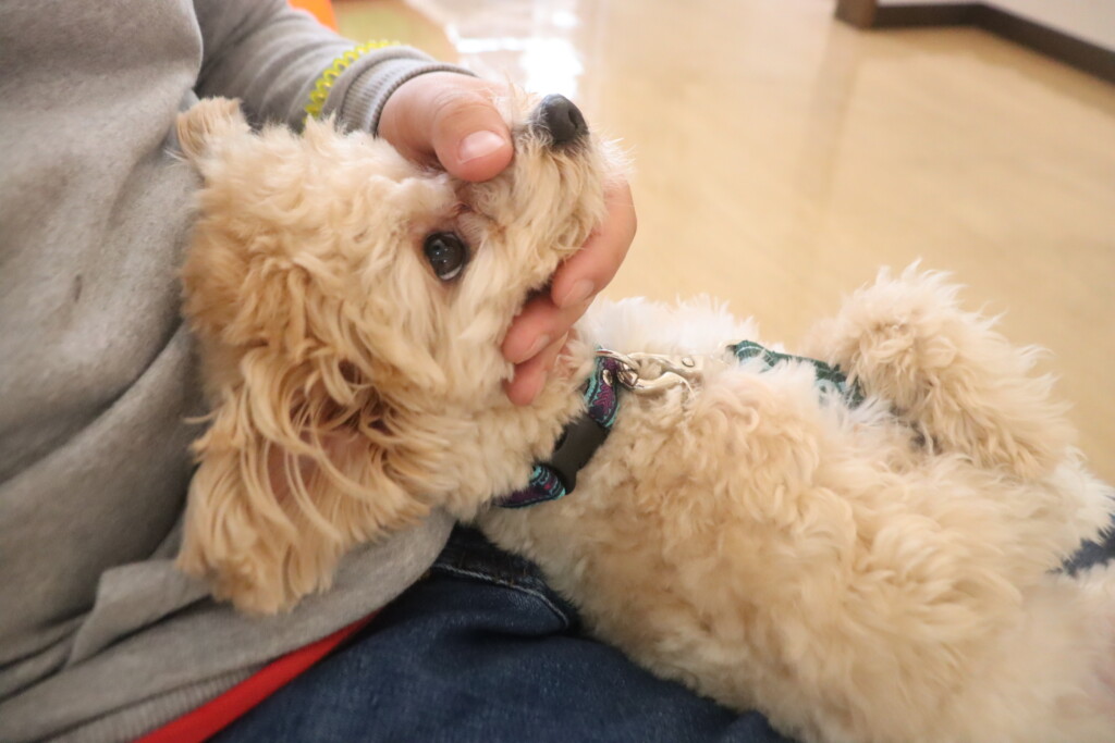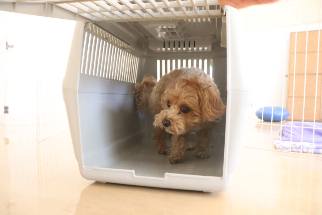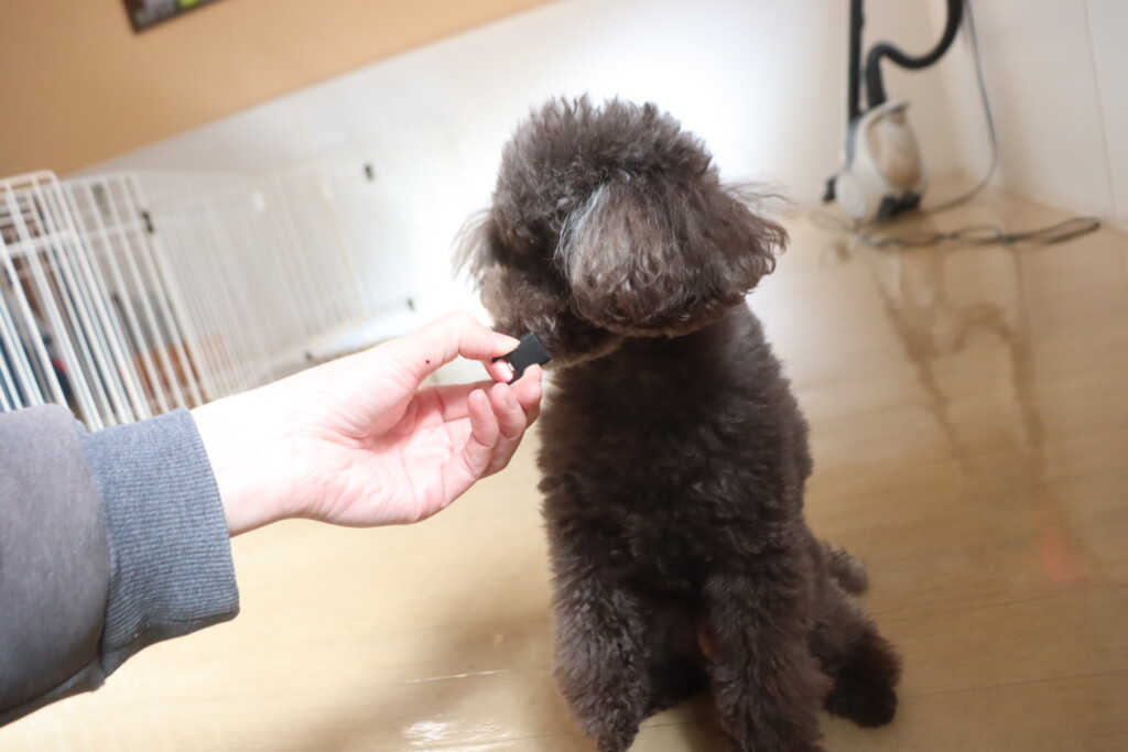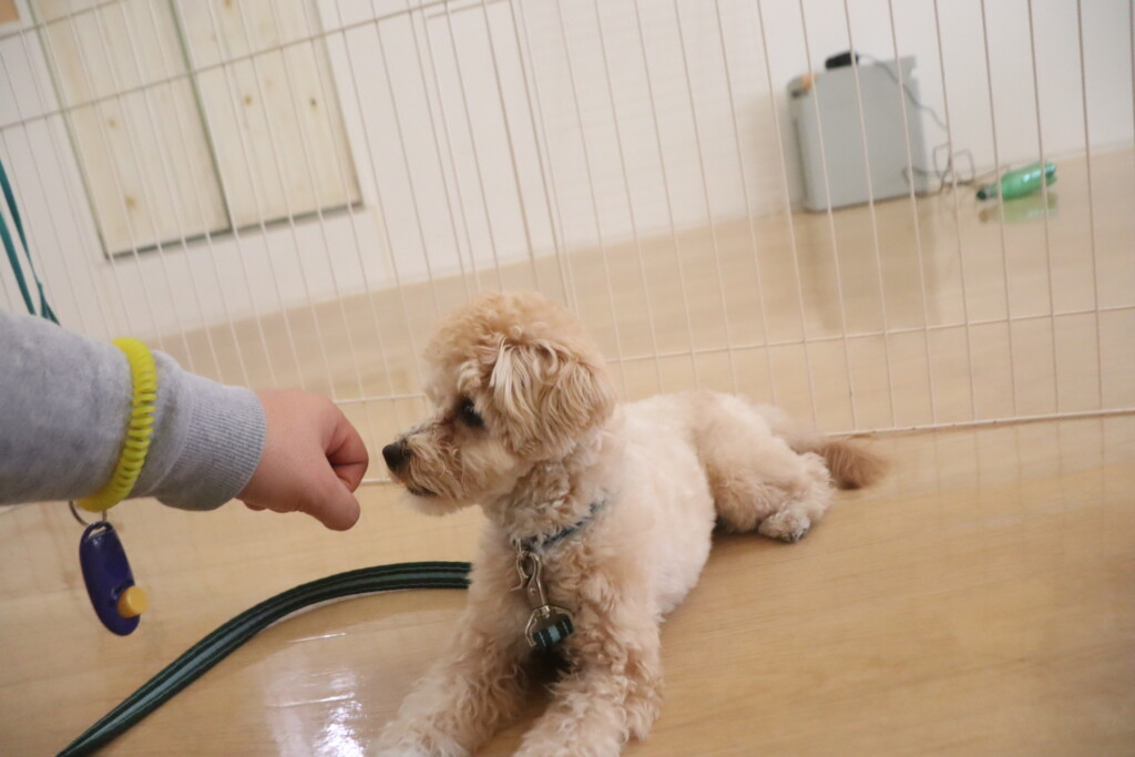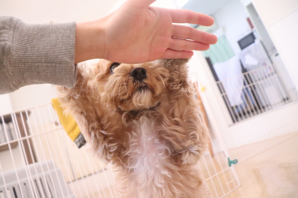 本人が落ちつけている時にフードを握る手を開いてあげると、すぐに理解してその後は自ら落ち着いて待つことが出来ていました👏