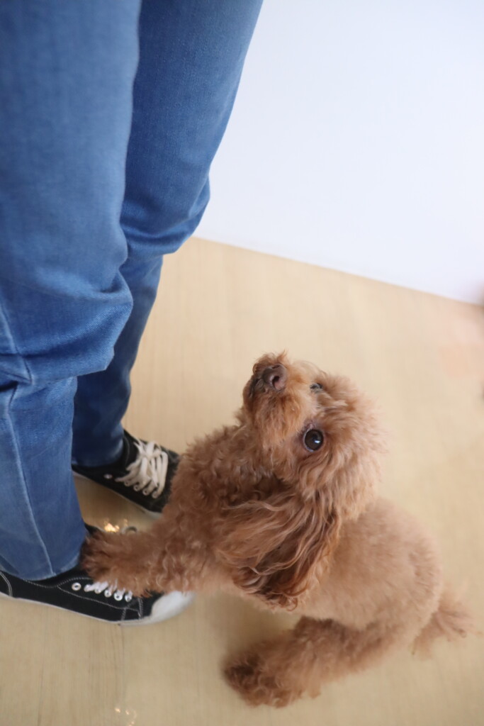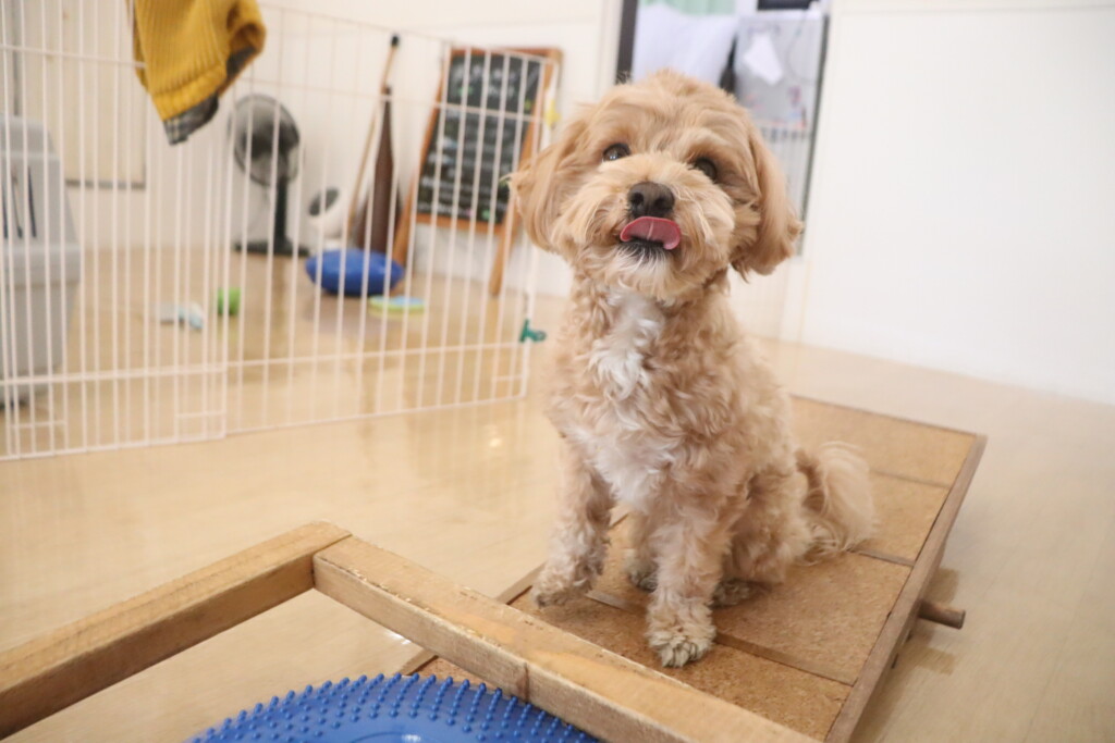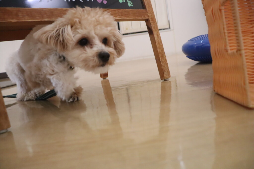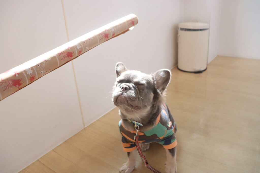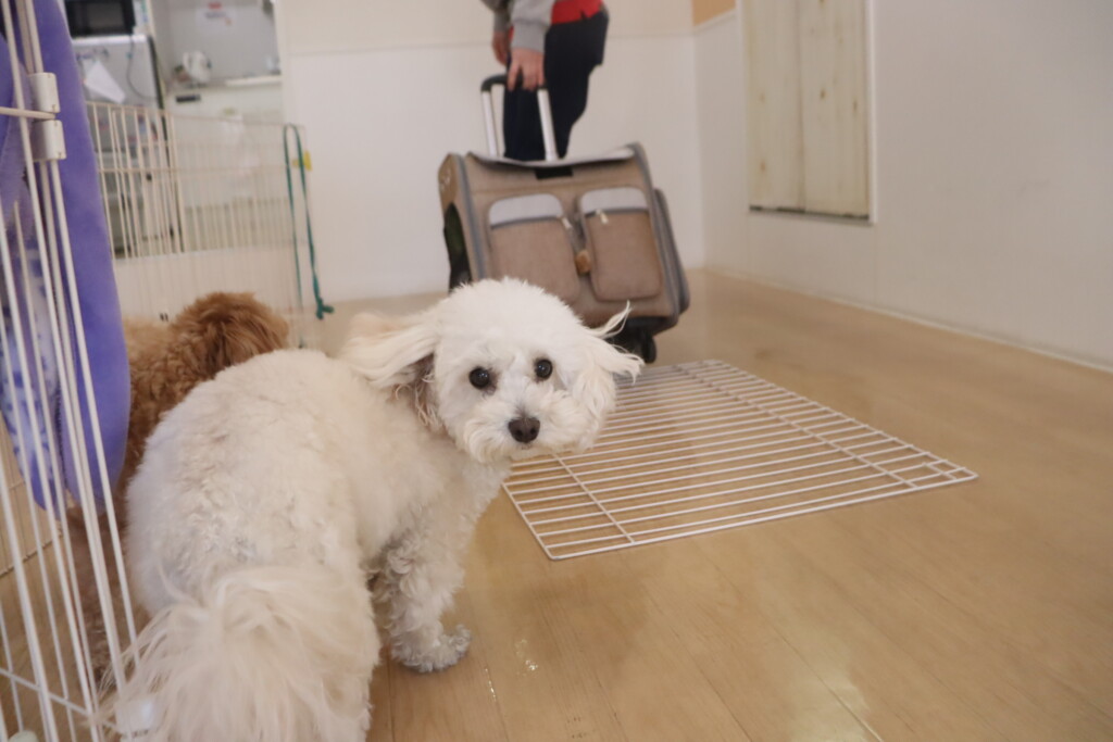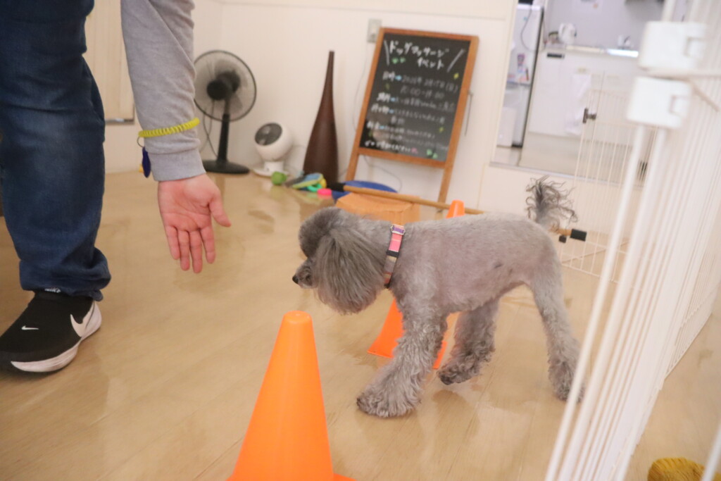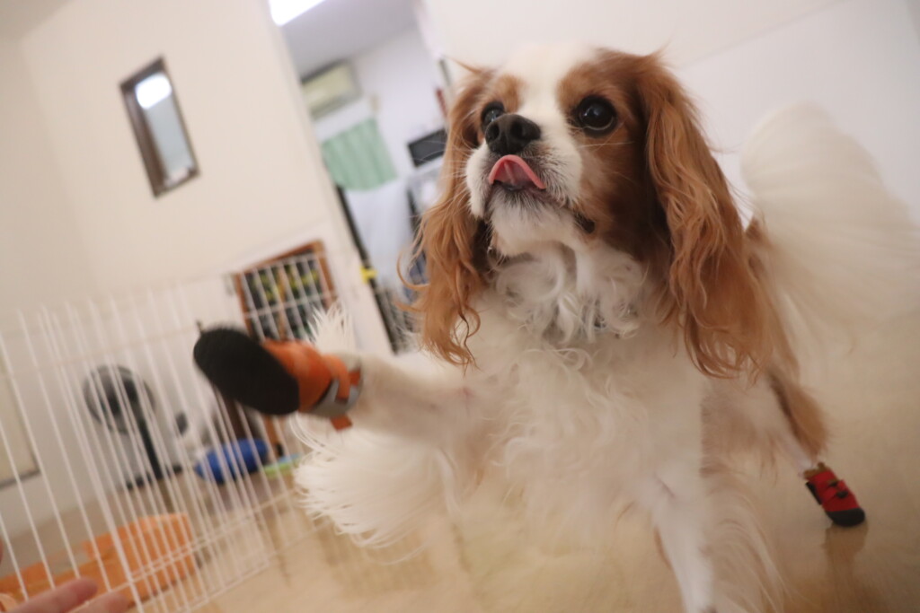 本人が落ちつけている時にフードを握る手を開いてあげると、すぐに理解してその後は自ら落ち着いて待つことが出来ていました👏