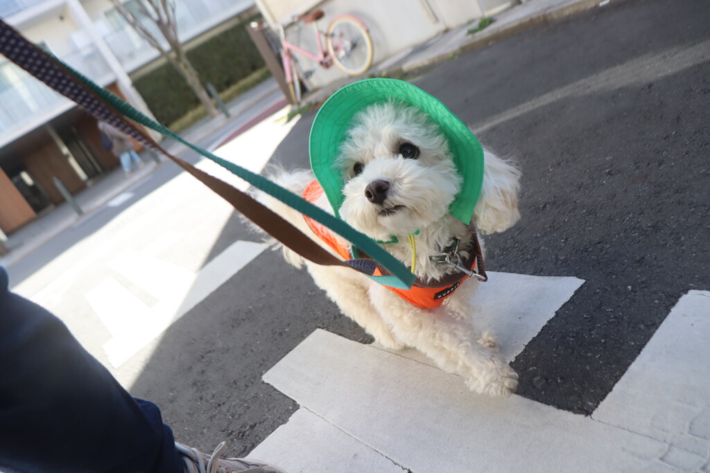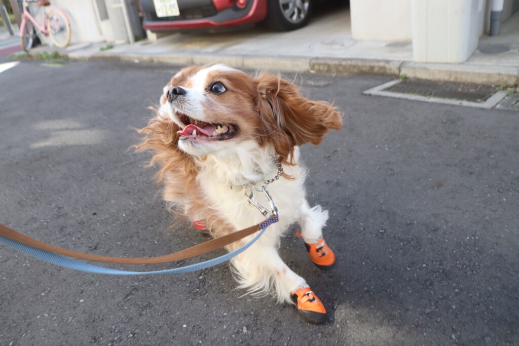 今日はお散歩へ!スタッフが何か指示をしている間は靴を気にせず歩けていたので、少しずつサポートが無くても気にせず居られるようになっていくといいね!