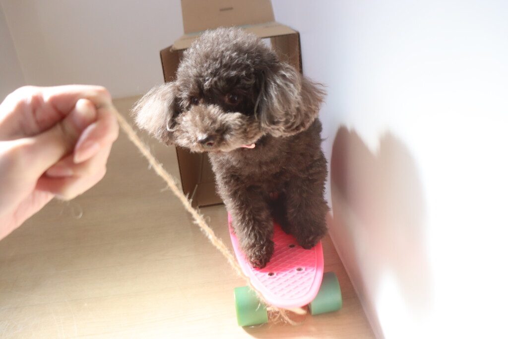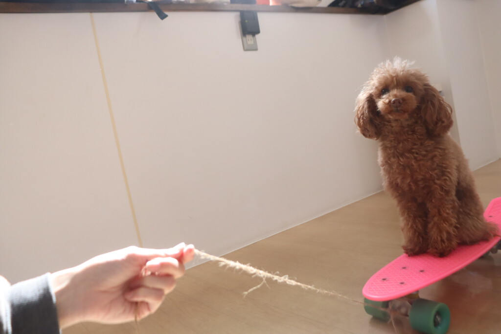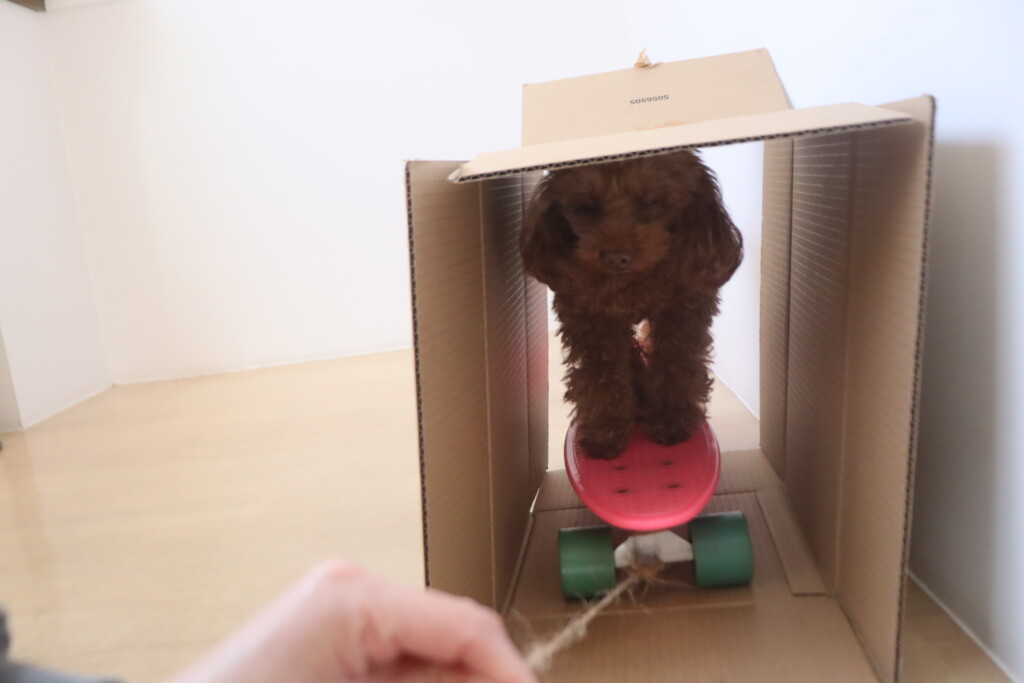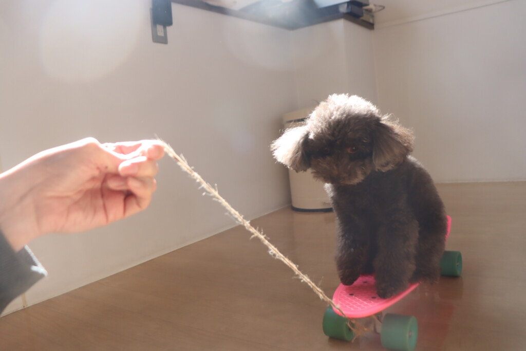 ココちゃん、くうちゃんは動くスケボーに乗る練習をしたね!
