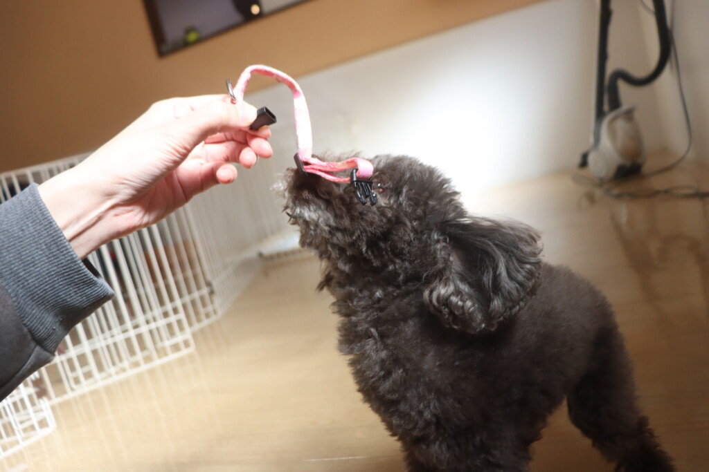 「それアタシの!!」と早く着けてほしくてクルクルソワソワしていましたが、
