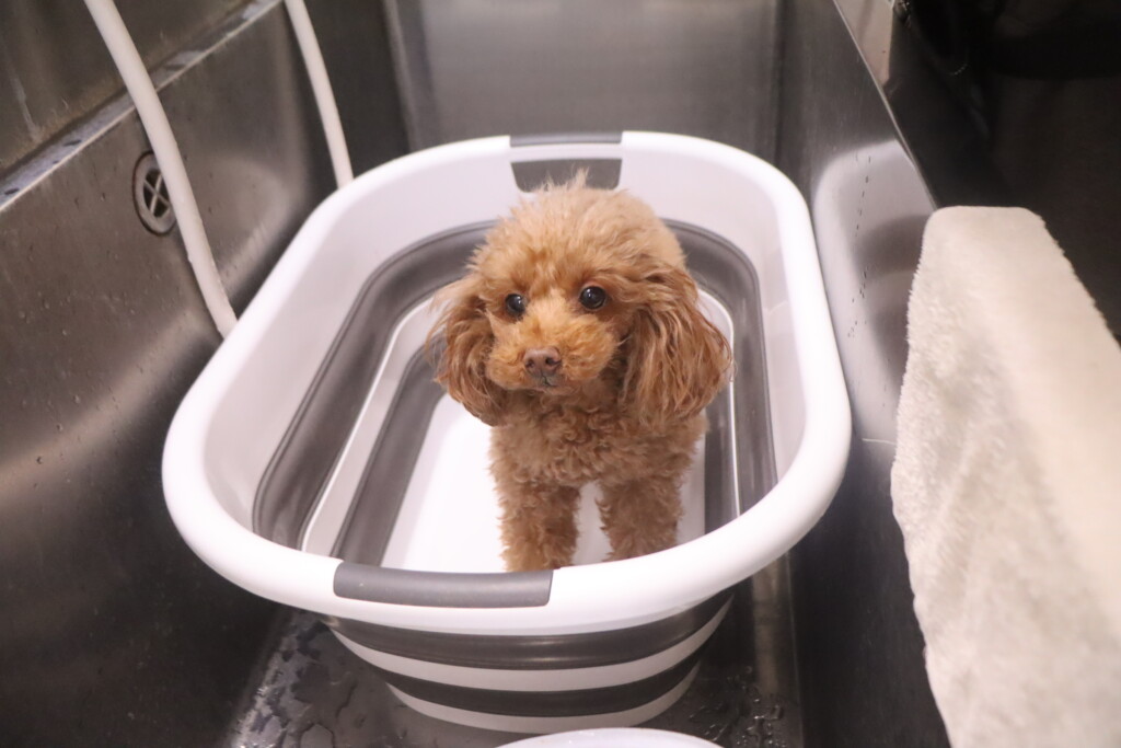 くうちゃんはシンク内でバスタブ慣れをしました!
