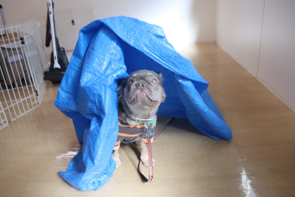 ハイちゃんはブルーシートでの物慣れも行いました!