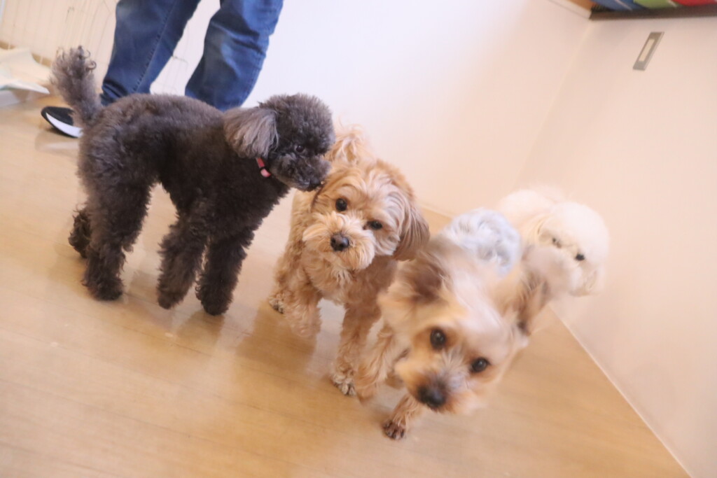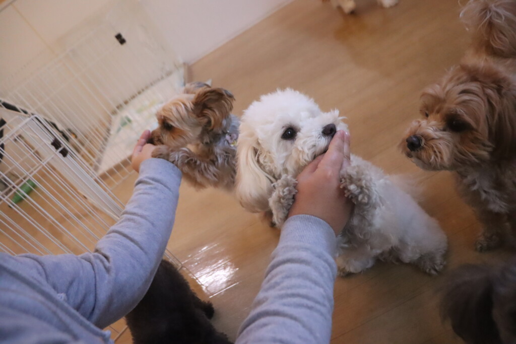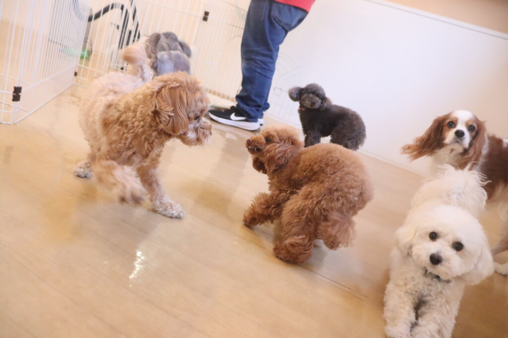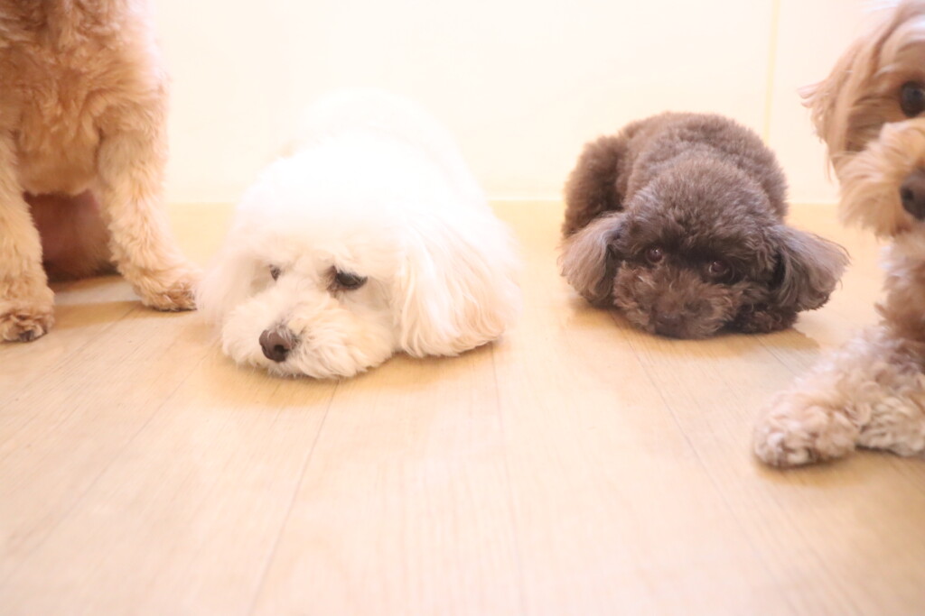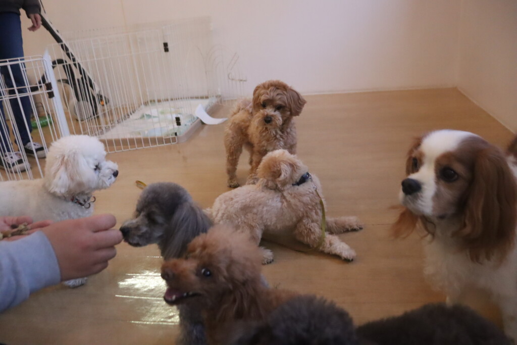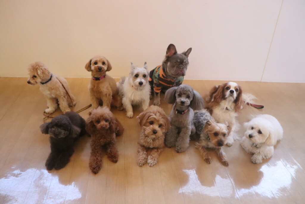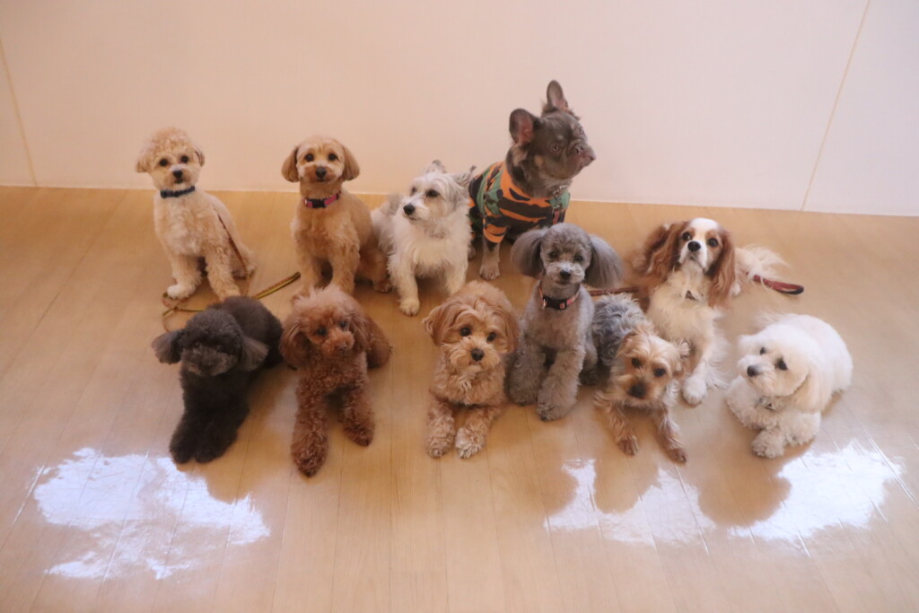 今日の保育園生は、ヨークシャーテリアのノアくん、ジャックラッセルテリアのソフィちゃん、キャバリアキングチャールズスパニエルの茶々丸くん、ポメラニアン×トイプードルのエマちゃん、マルチーズ×トイプードルのアリアちゃん・陽向くん・アンディくん、トイプードルのアンジュちゃん・くうちゃん・ココちゃん、フレンチブルドッグのハイちゃんです!