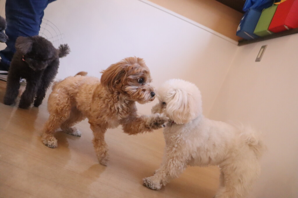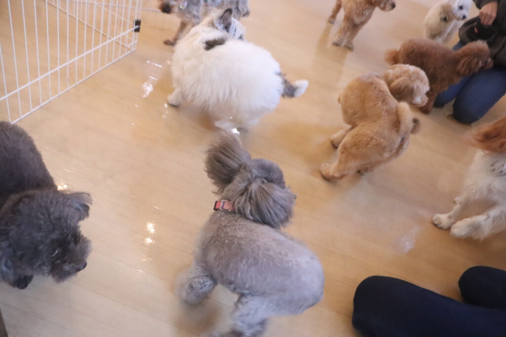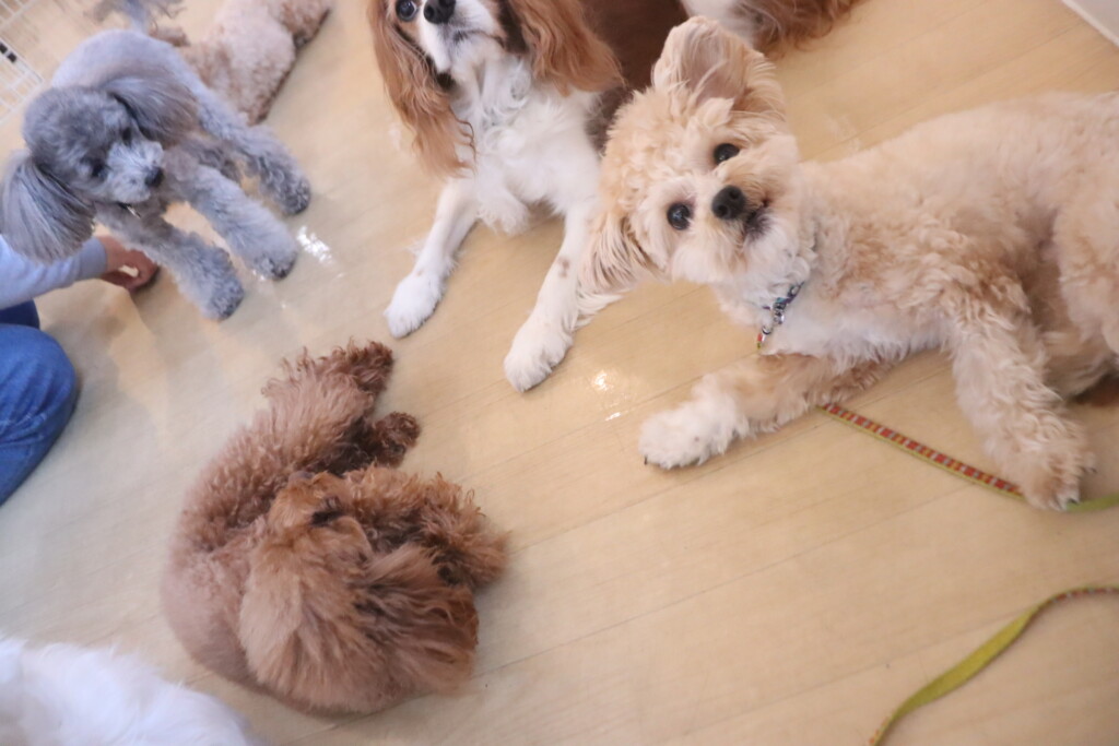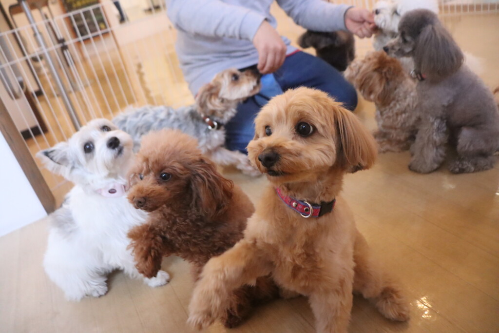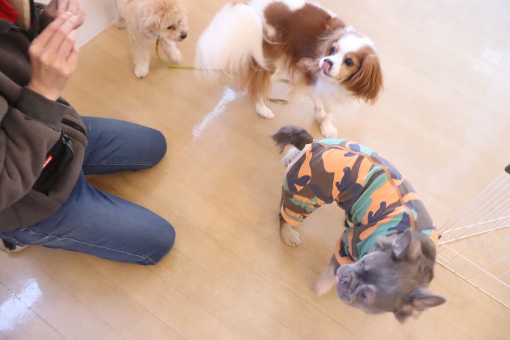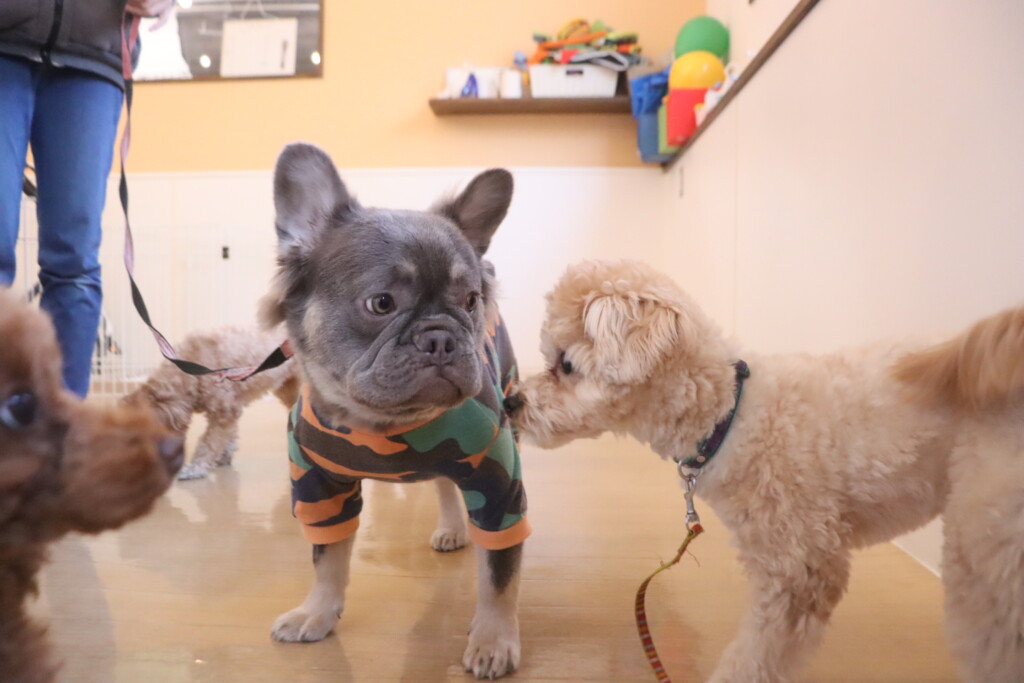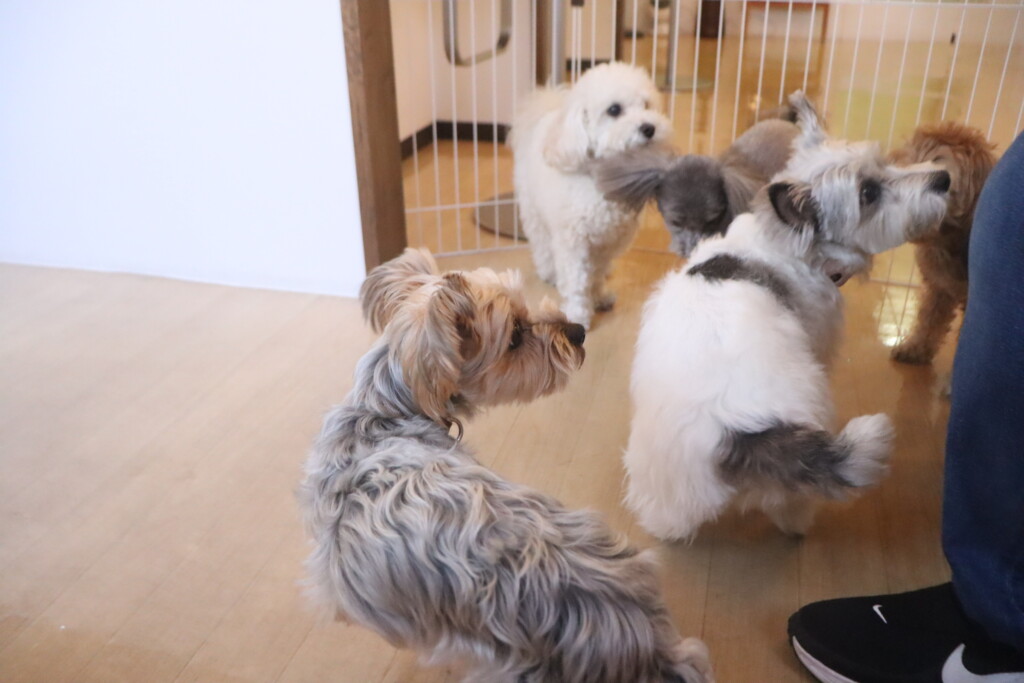 今日の保育園生は、ヨークシャーテリアのノアくん、ジャックラッセルテリアのソフィちゃん、キャバリアキングチャールズスパニエルの茶々丸くん、ポメラニアン×トイプードルのエマちゃん、マルチーズ×トイプードルのアリアちゃん・陽向くん・アンディくん、トイプードルのアンジュちゃん・くうちゃん・ココちゃん、フレンチブルドッグのハイちゃんです!