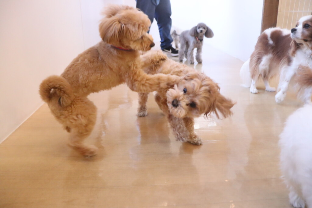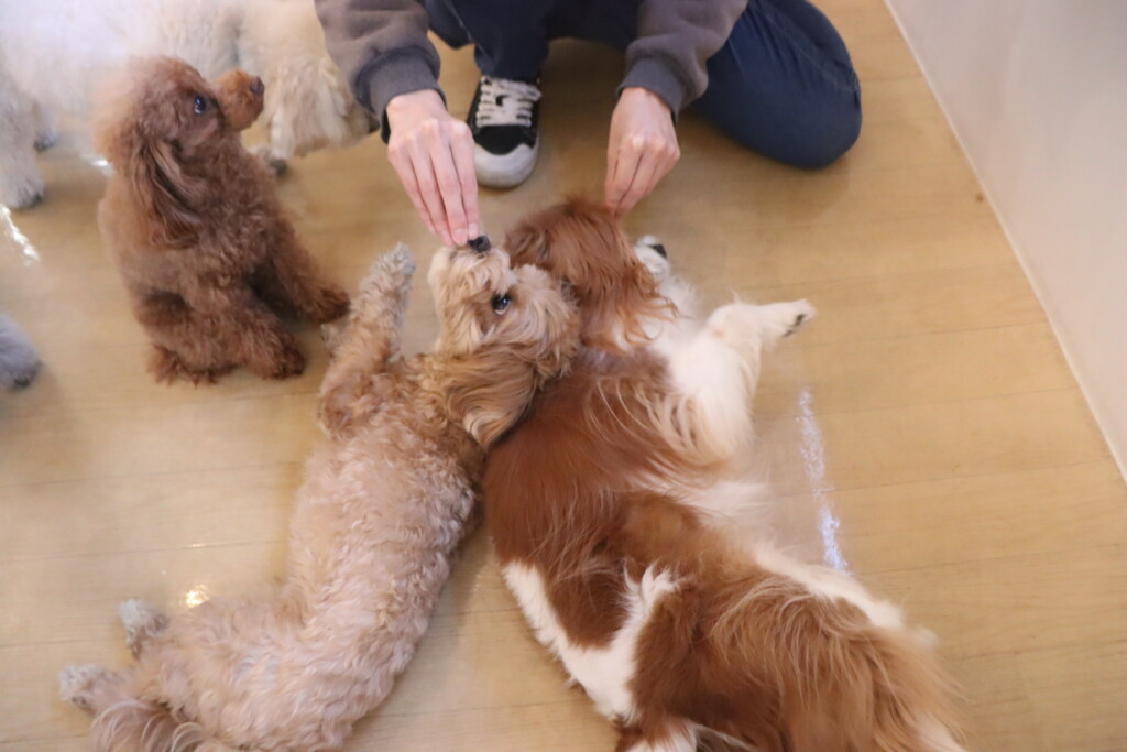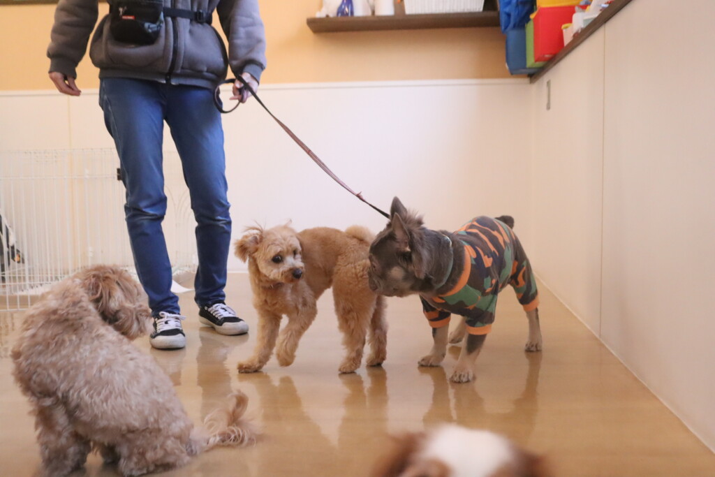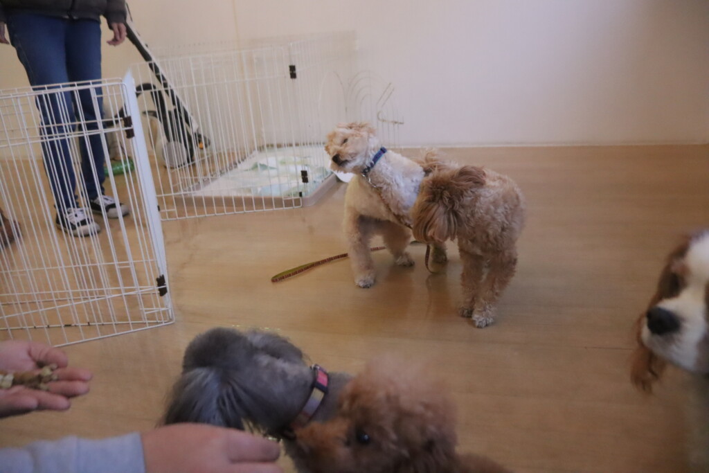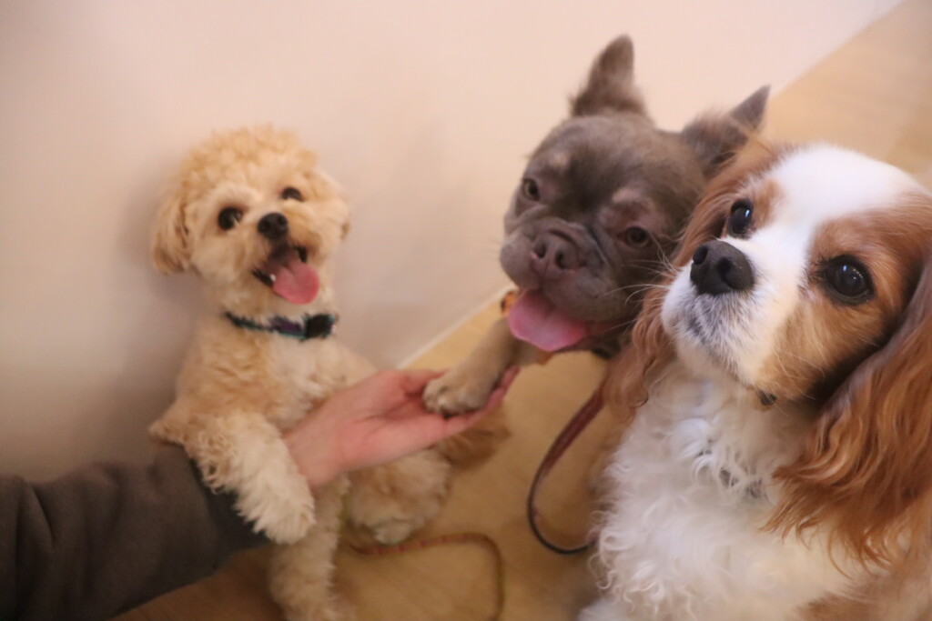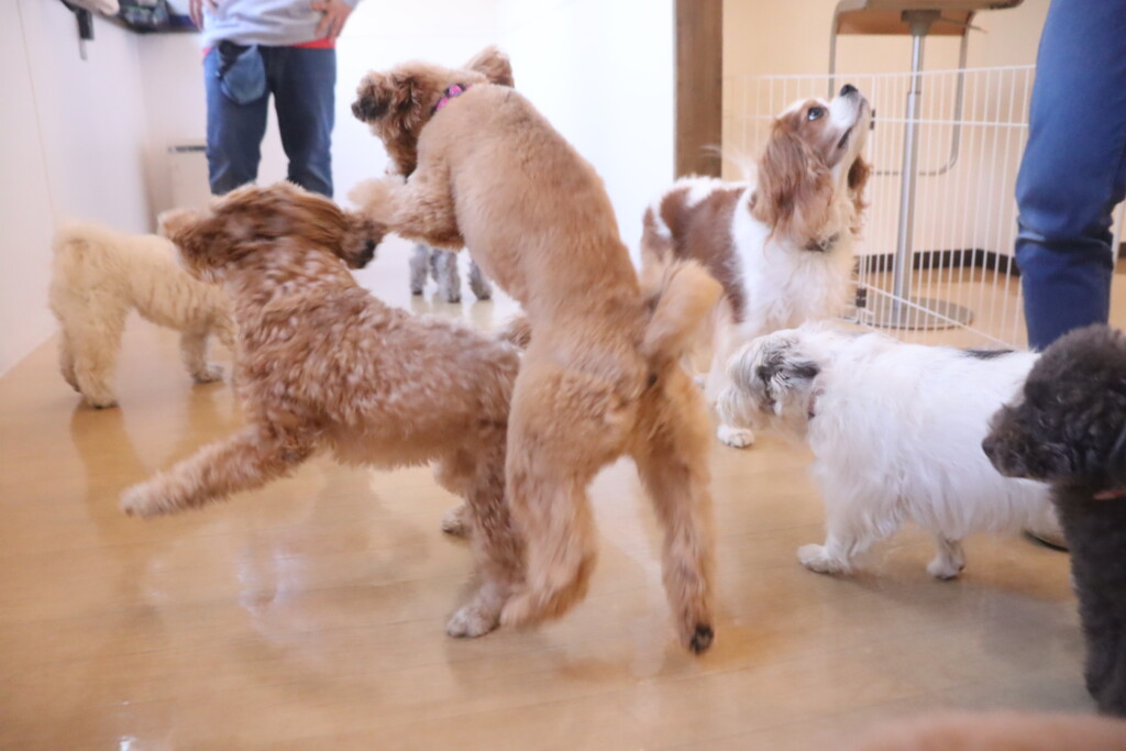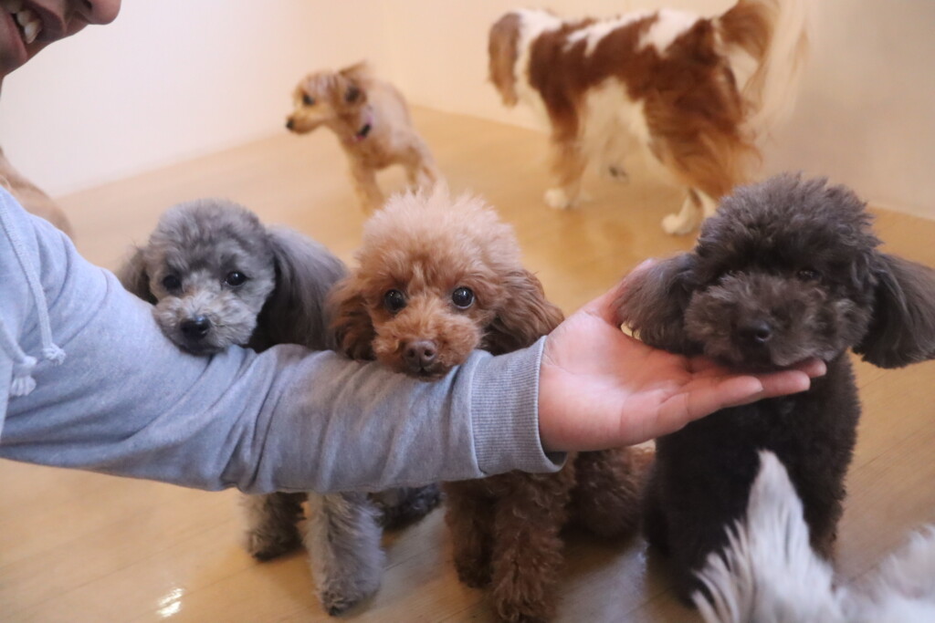 今日の保育園生は、ヨークシャーテリアのノアくん、ジャックラッセルテリアのソフィちゃん、キャバリアキングチャールズスパニエルの茶々丸くん、ポメラニアン×トイプードルのエマちゃん、マルチーズ×トイプードルのアリアちゃん・陽向くん・アンディくん、トイプードルのアンジュちゃん・くうちゃん・ココちゃん、フレンチブルドッグのハイちゃんです!