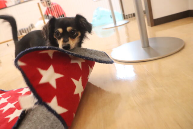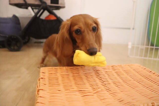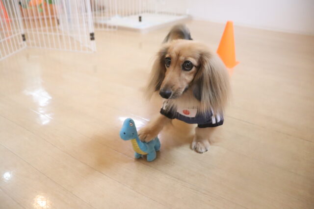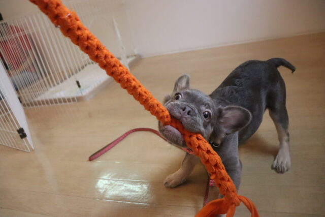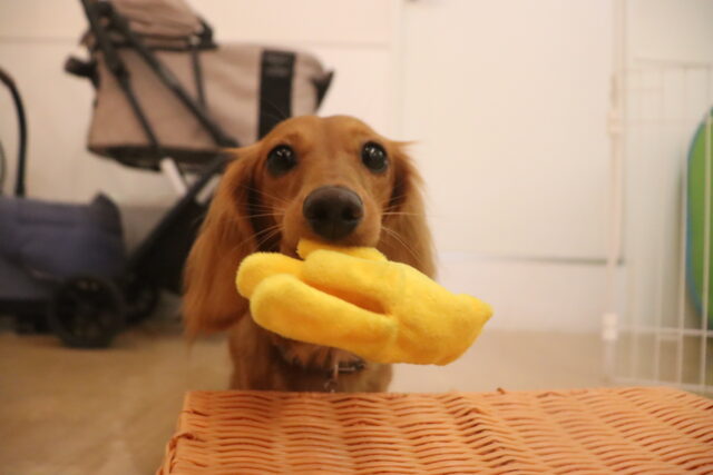 みるもちゃんはレトリーブに向けてオモチャを咥える特訓を密かに続けています🤫