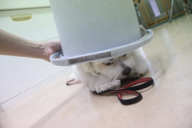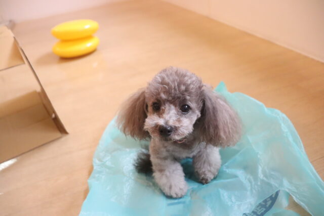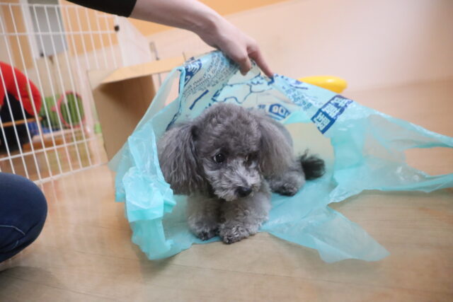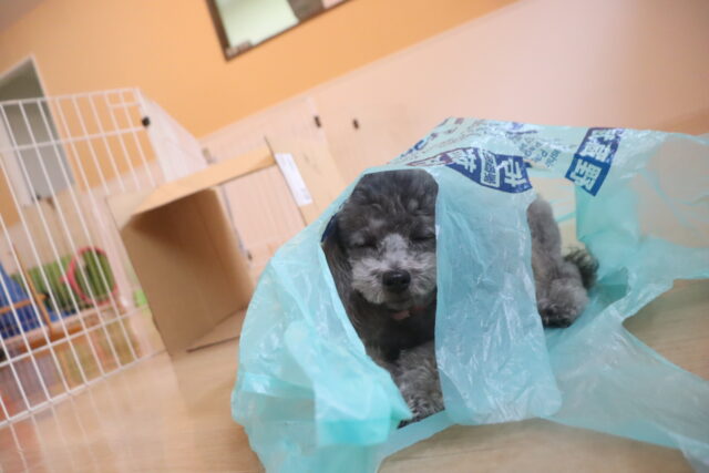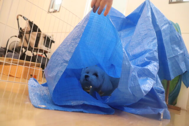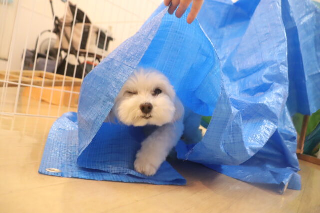 アンジュちゃんはビニール袋で慣れの練習もしました!