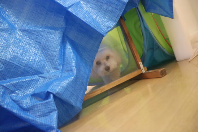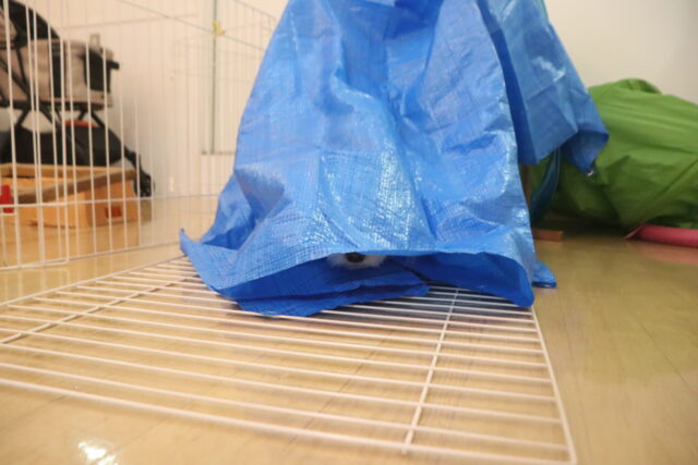 少しでもスタッフがビニールを動かすと気にして警戒モードでしたが、