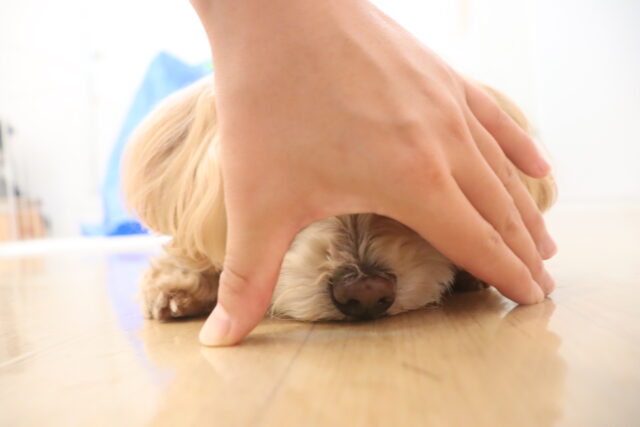 今度はゴム手袋の手で頭を撫でてみると、迷惑そうなゆずちゃんと、