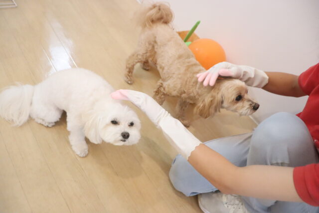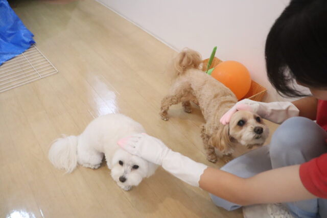 クオンくん、こころちゃんはお手入れの練習もしたね!