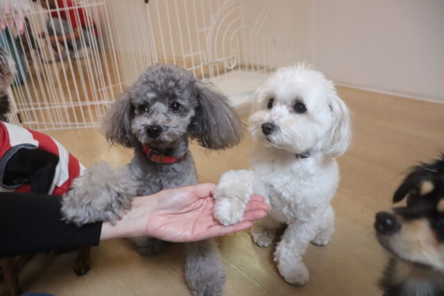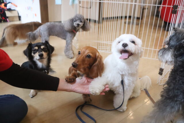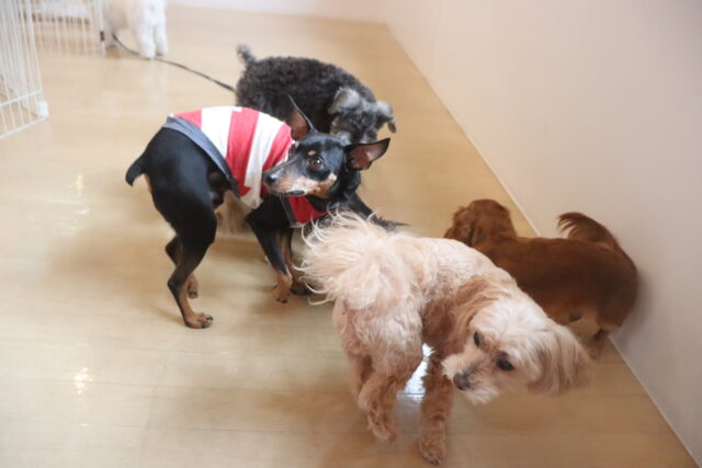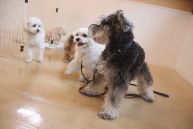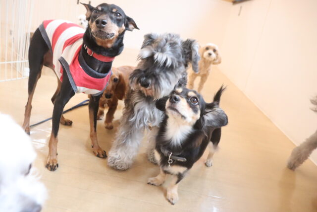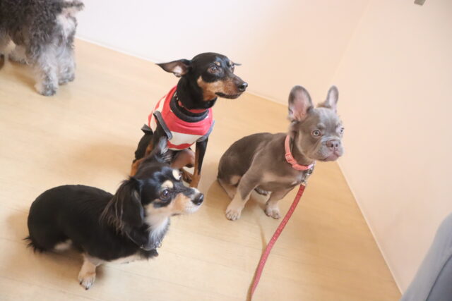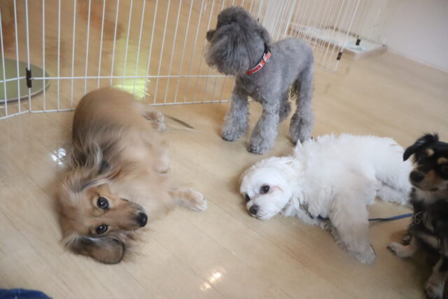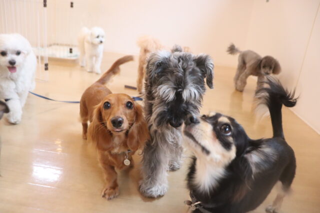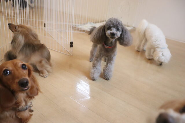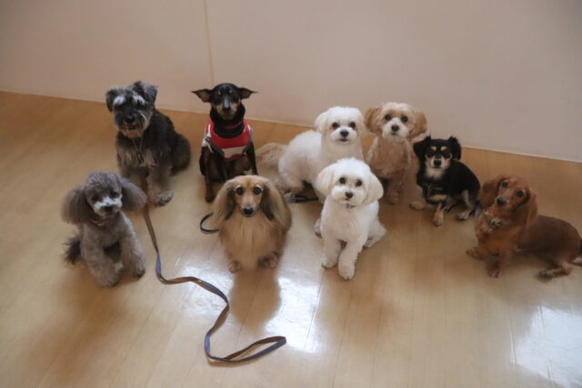 今日の保育園生は、ミニチュアシュナウザーのクオンくん、フレンチブルドッグのハイちゃん、ミニチュアピンシャーのルアくん、トイプードルのアンジュちゃん、チワワ×ミニチュアダックスフンドのこころちゃん、マルチーズ×トイプードルのサンディちゃん・ゆずちゃん・アンディくん、ミニチュアダックスフンドのみるもちゃん、マルチーズのことぶきくん、カニンヘンダックスフンドのラテちゃんです!