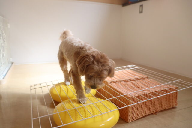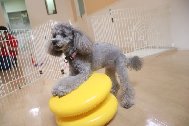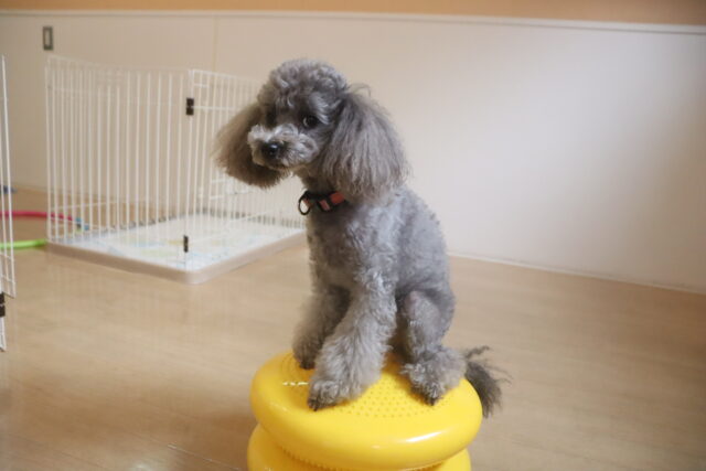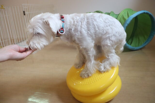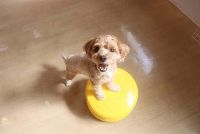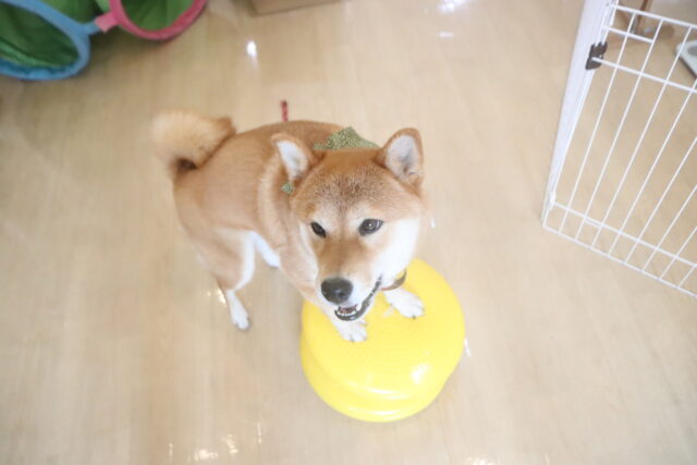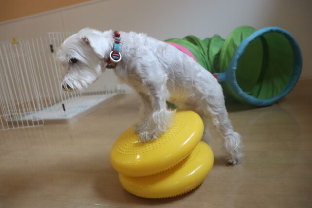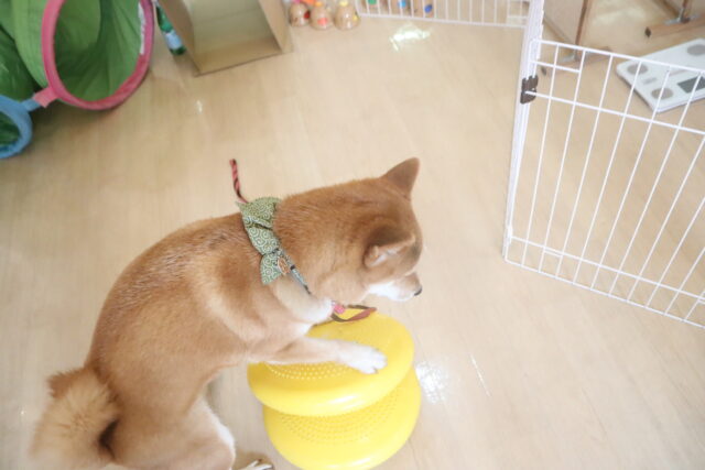 小梅ちゃん、アンジュちゃん、ソランちゃん、ポチちゃんは重ねたバランスディスクで筋トレをしました!