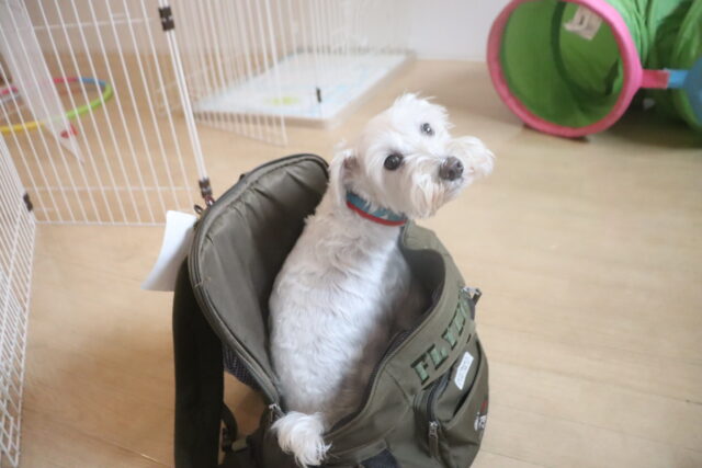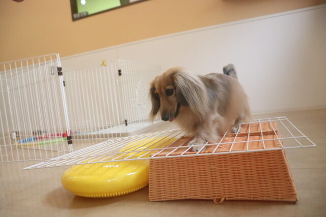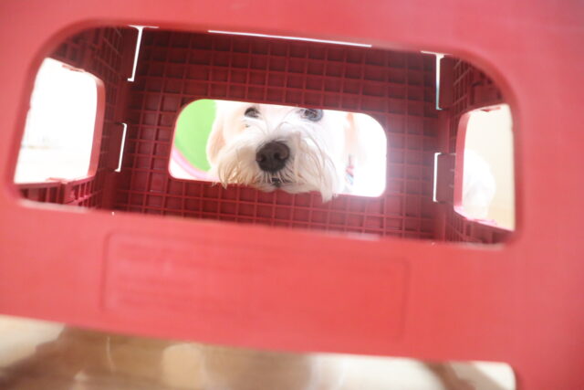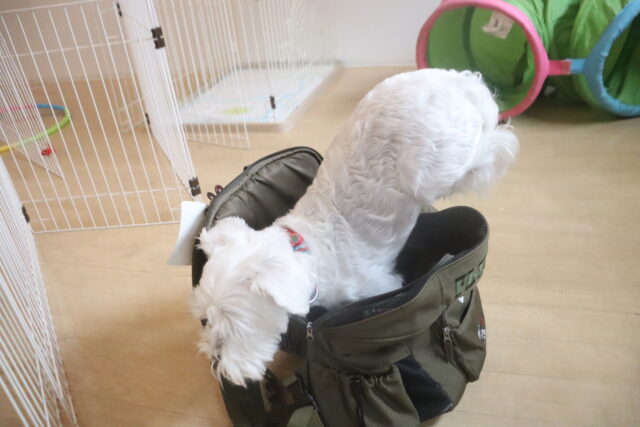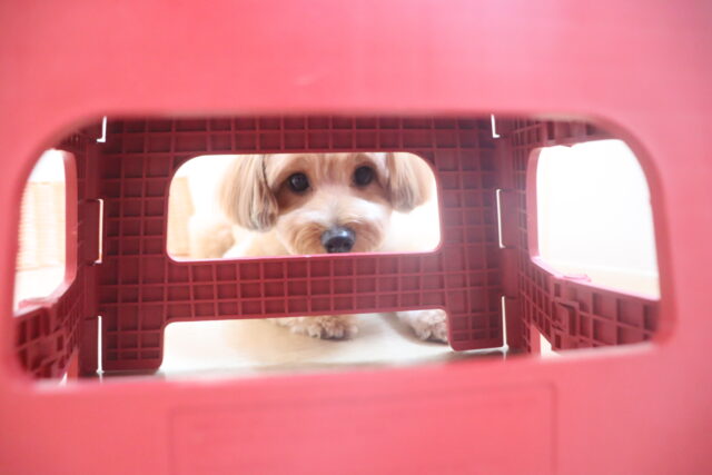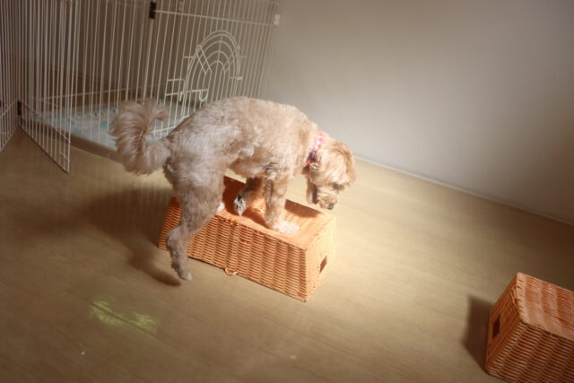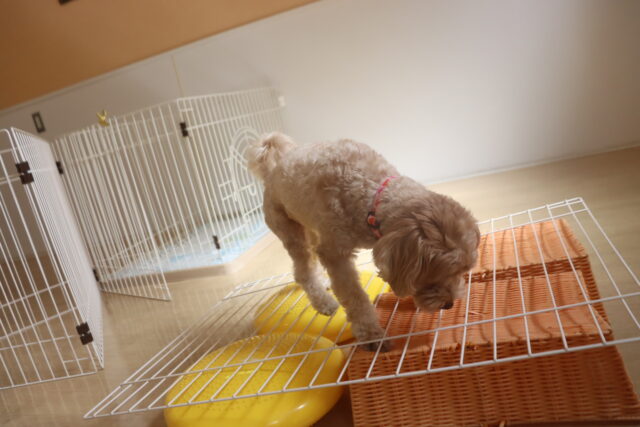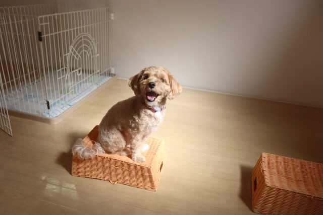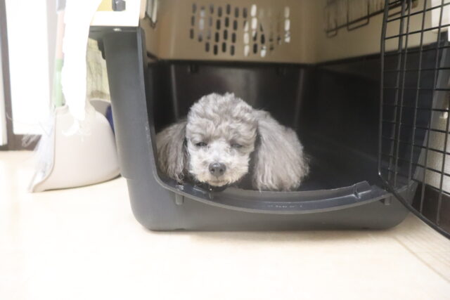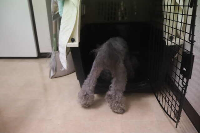 アンジュちゃんは大きいクレートに入る物慣れ!