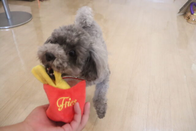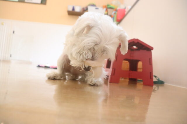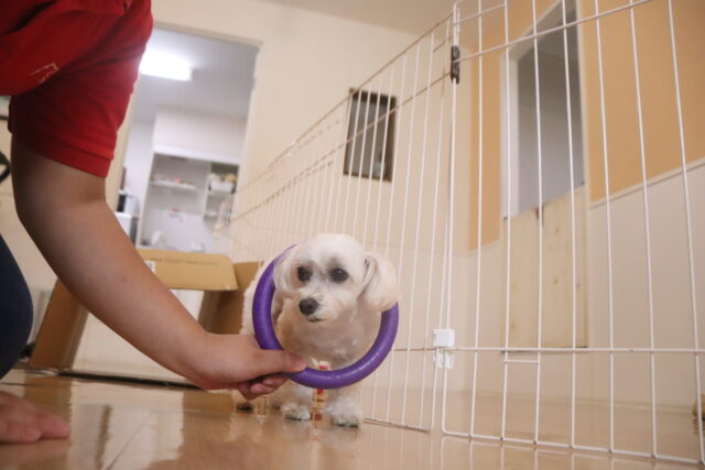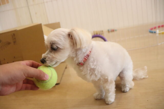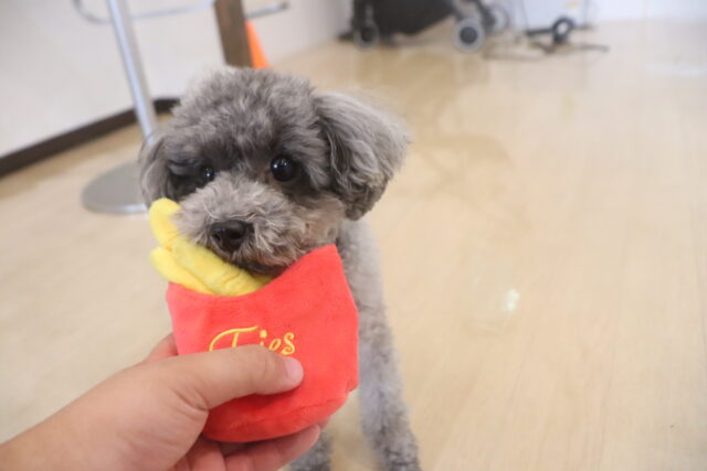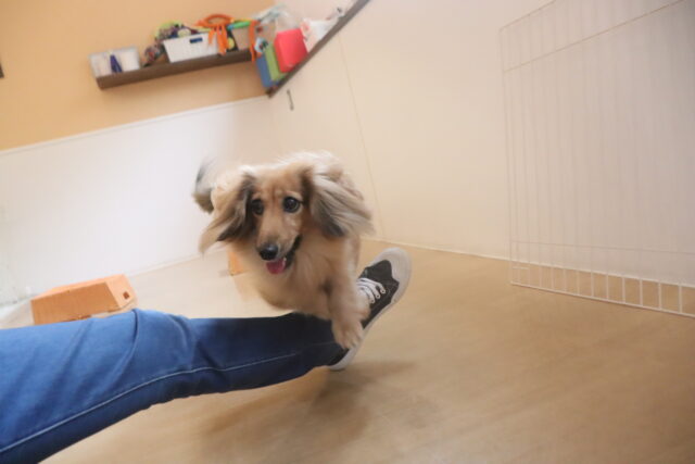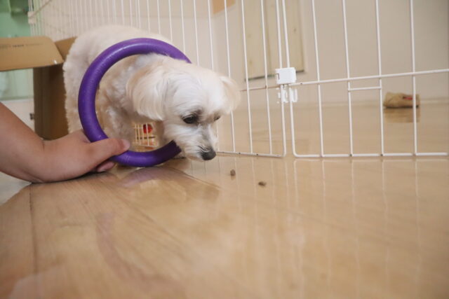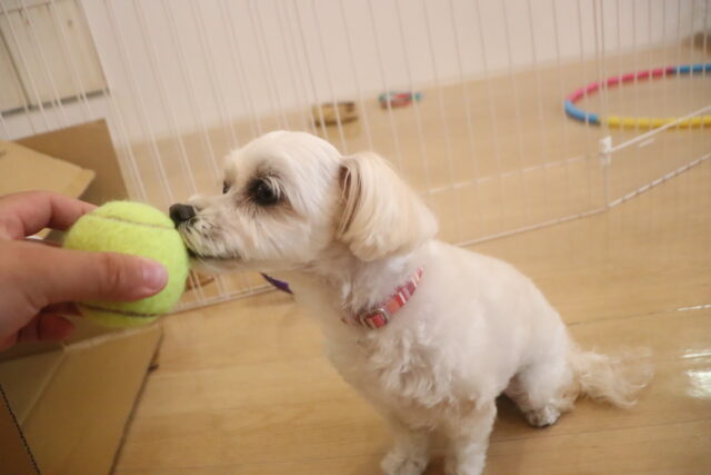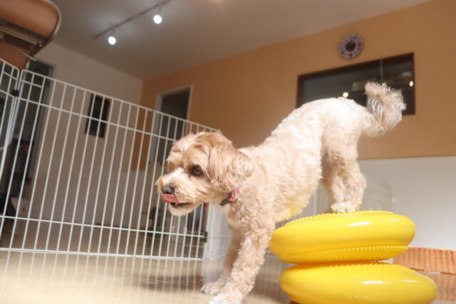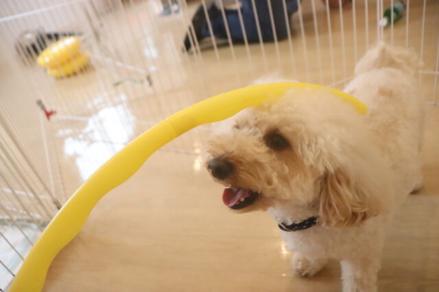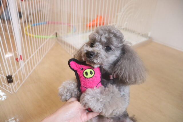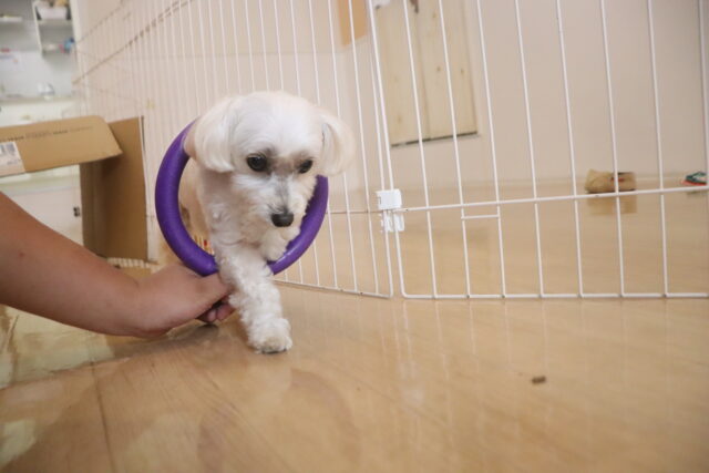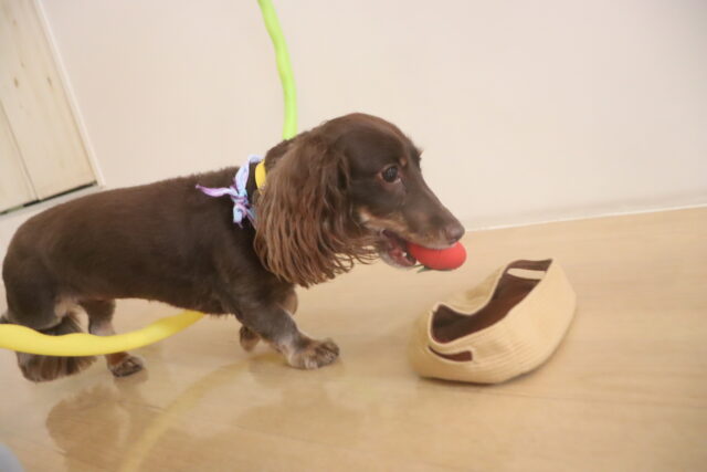 ここみちゃんはオモチャを咥えたまま動くことを強化練習中です!!