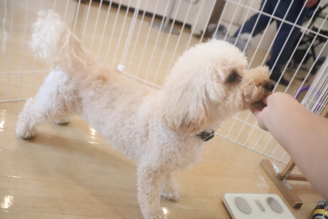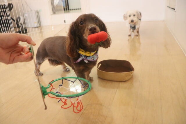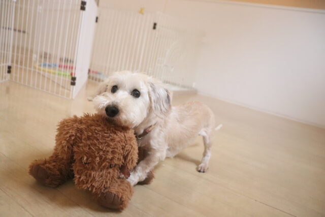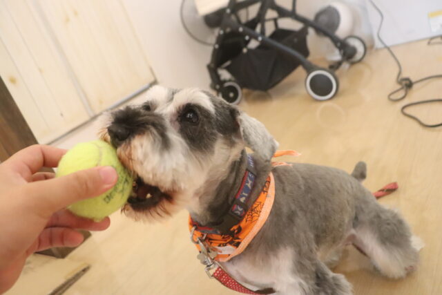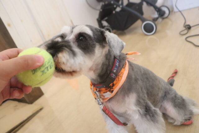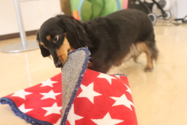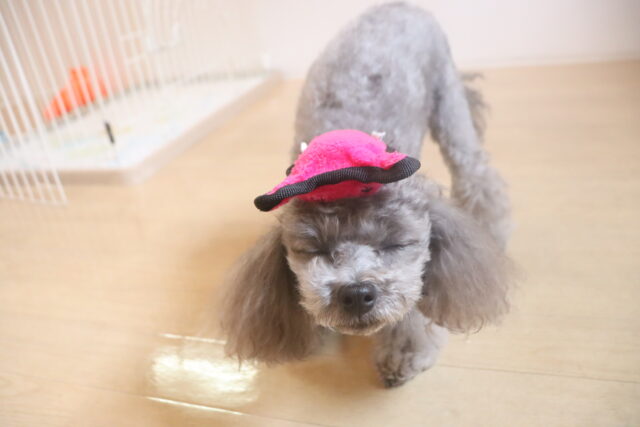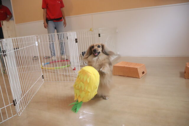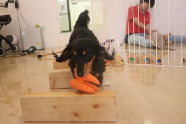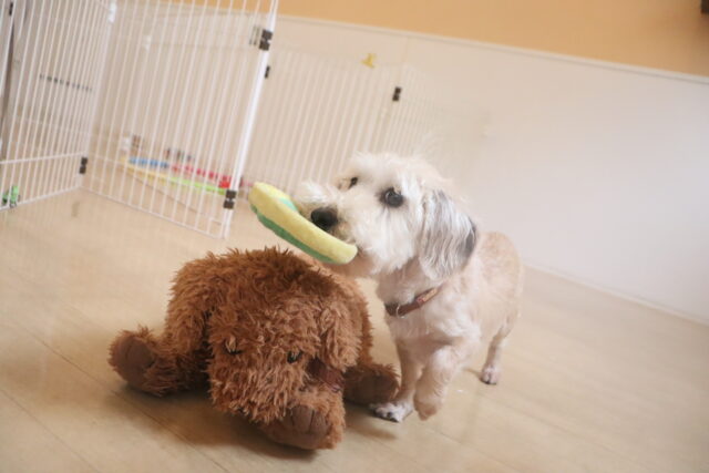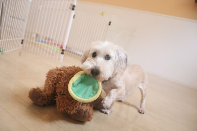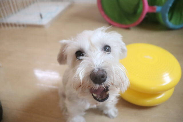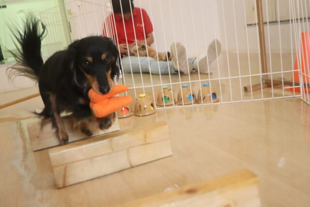 ここみちゃんはオモチャを咥えたまま動くことを強化練習中です!!