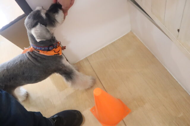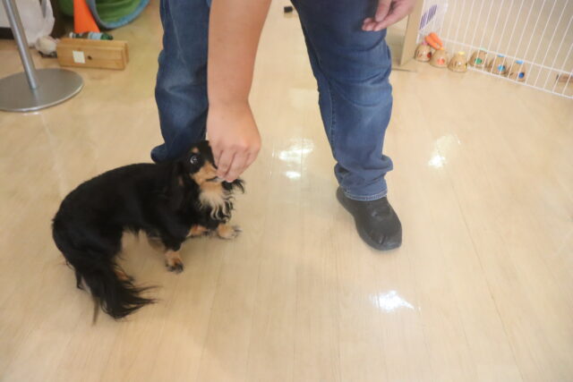 ソランちゃんは久しぶりにいないいないばあっ!の練習をしましたが、声掛けで上手に顔を上下出来ていました\(^o^)/