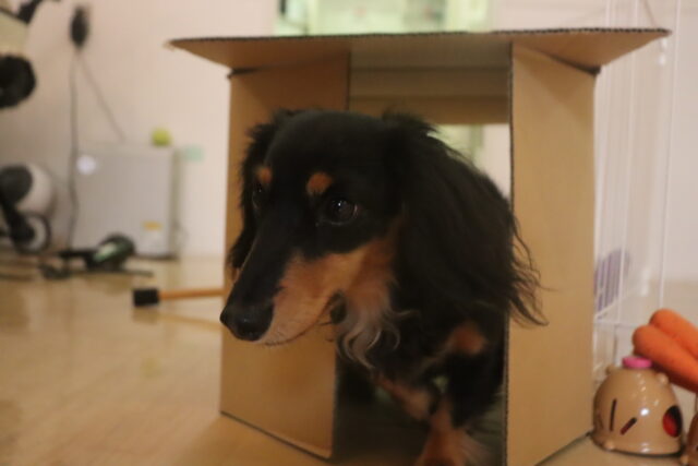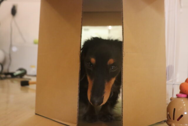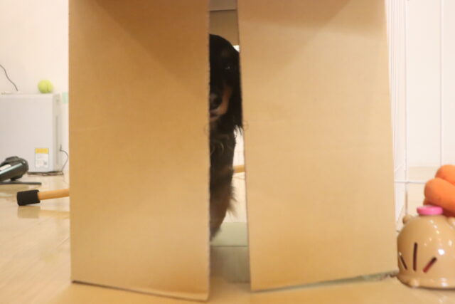 ノックしたり揺らしたりすると気にしていましたが、中から出て来ることはなく、段ボールの居心地の良さが勝ったようです🤭