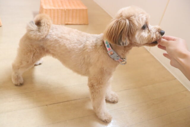 後ろ足の筋力アップを目指し、「立って」の練習も始めています!