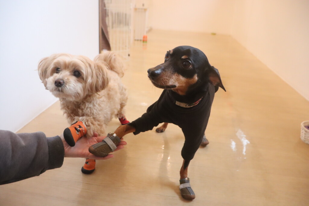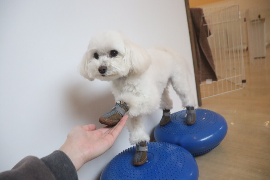 サンディちゃん、ルアくんは一緒に靴を履いてトレーニングしました!