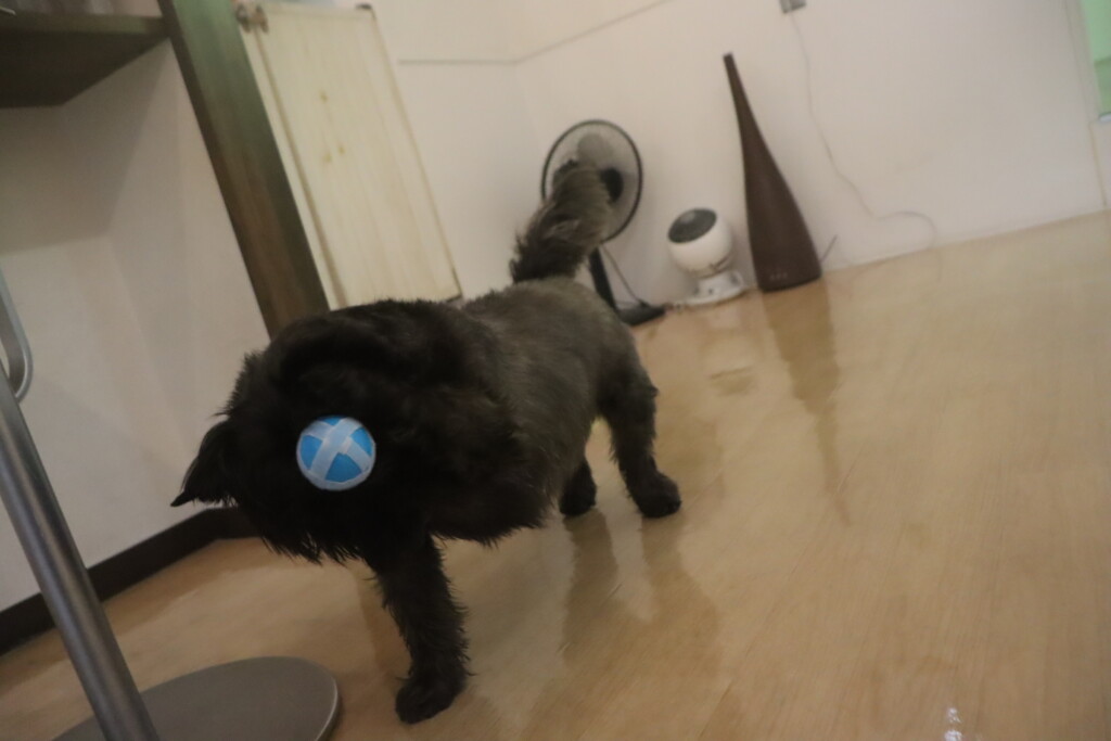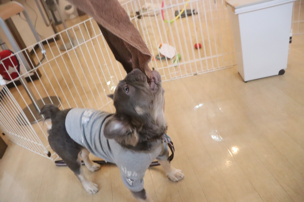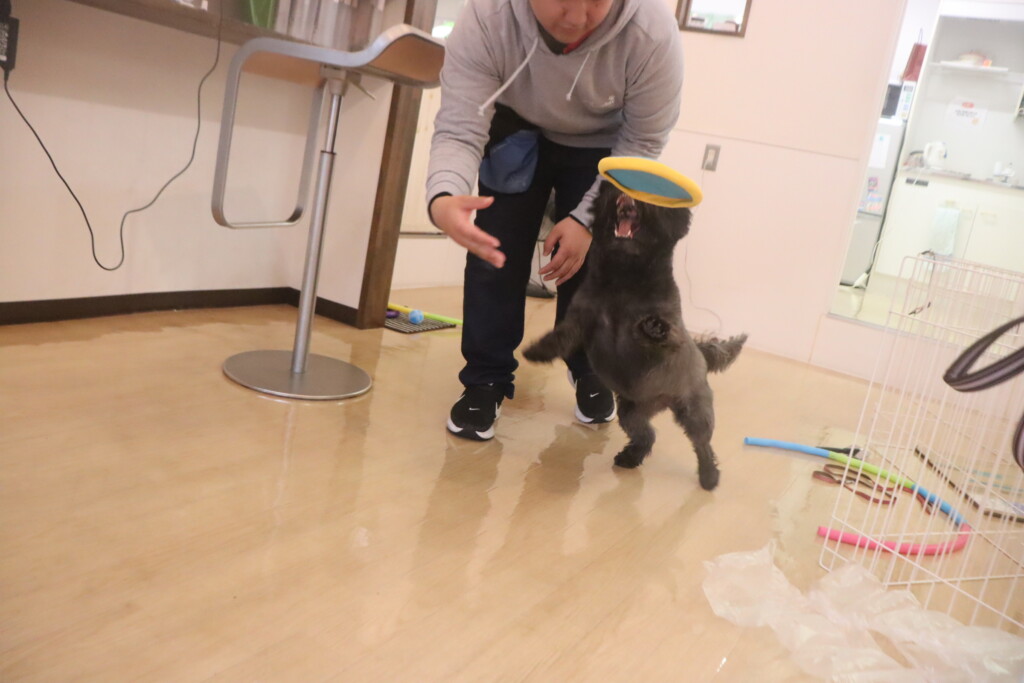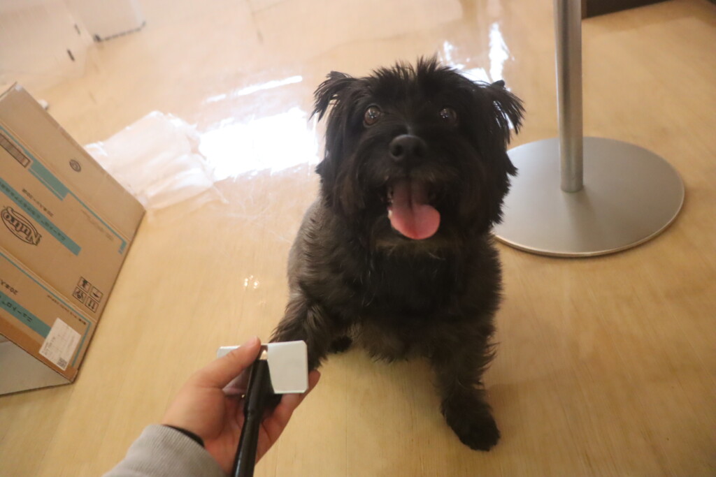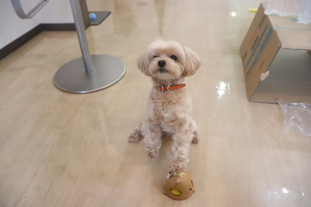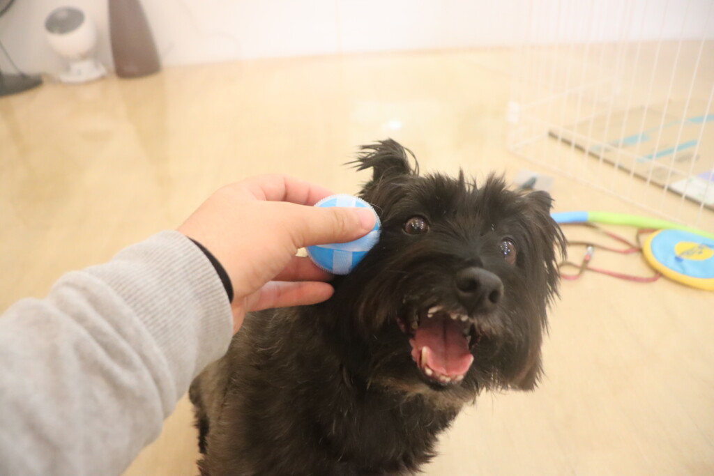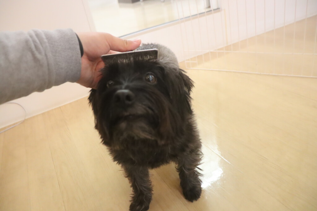 頭にくっつけると一生懸命前足で取ろうとする姿が可愛くてついつい意地悪してしまうスタッフでした😅