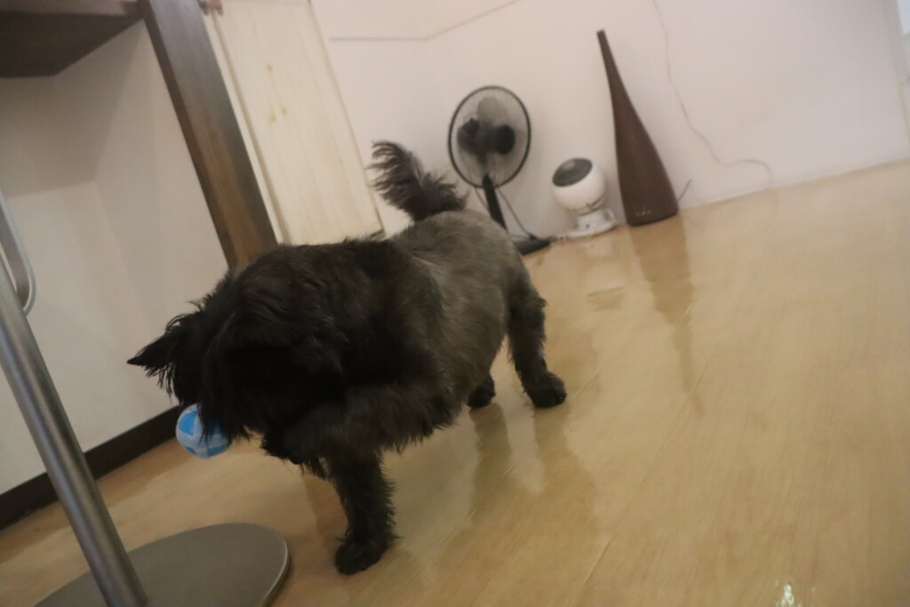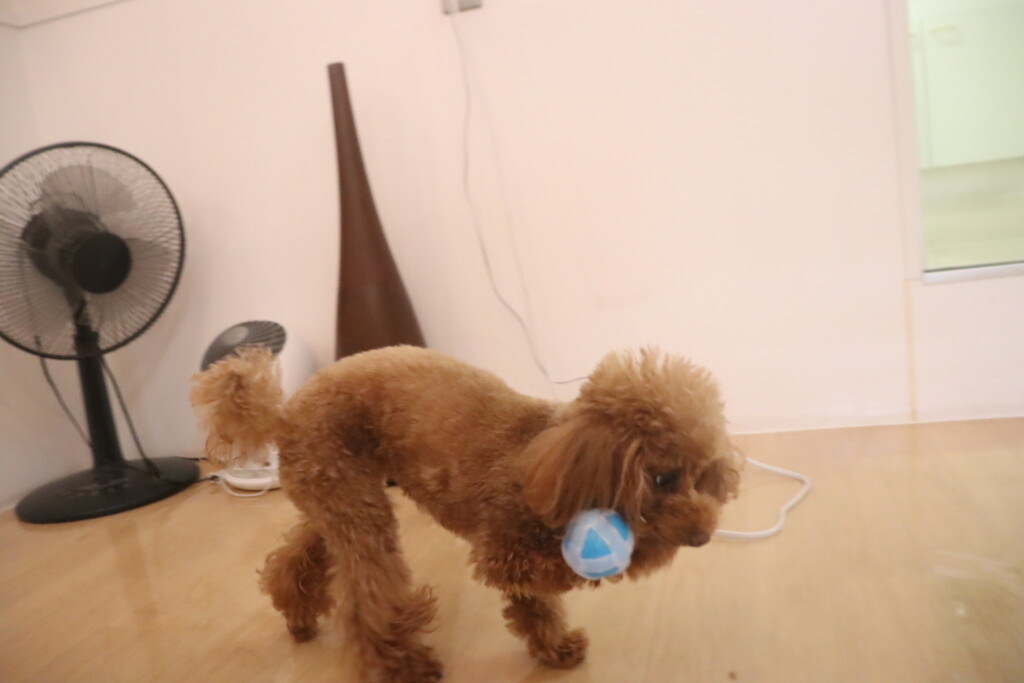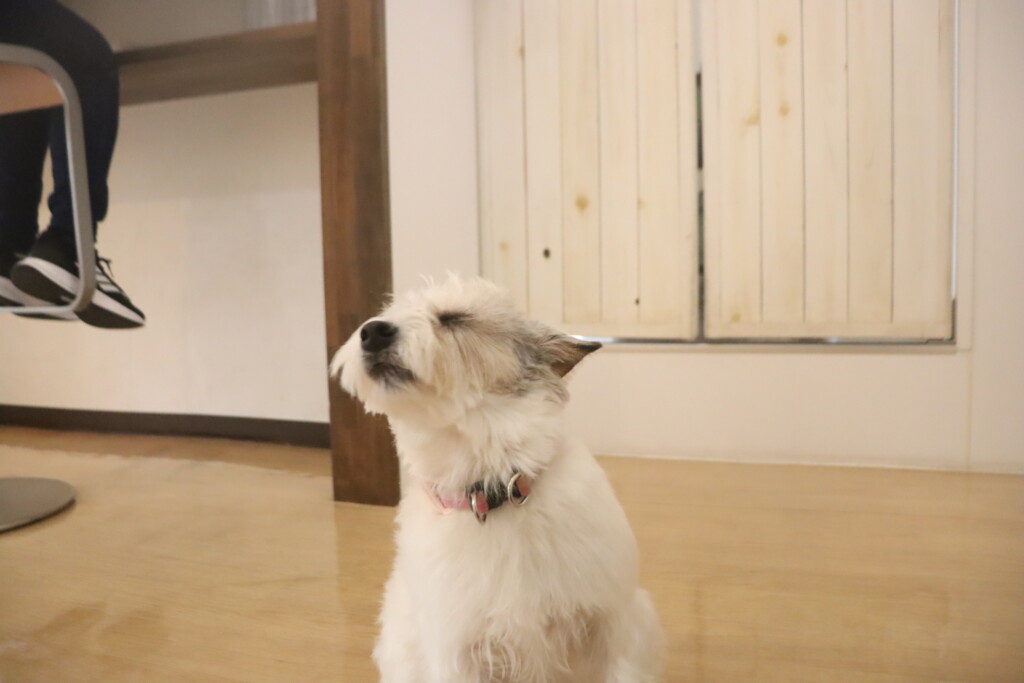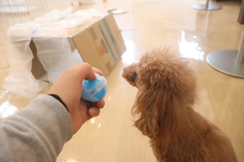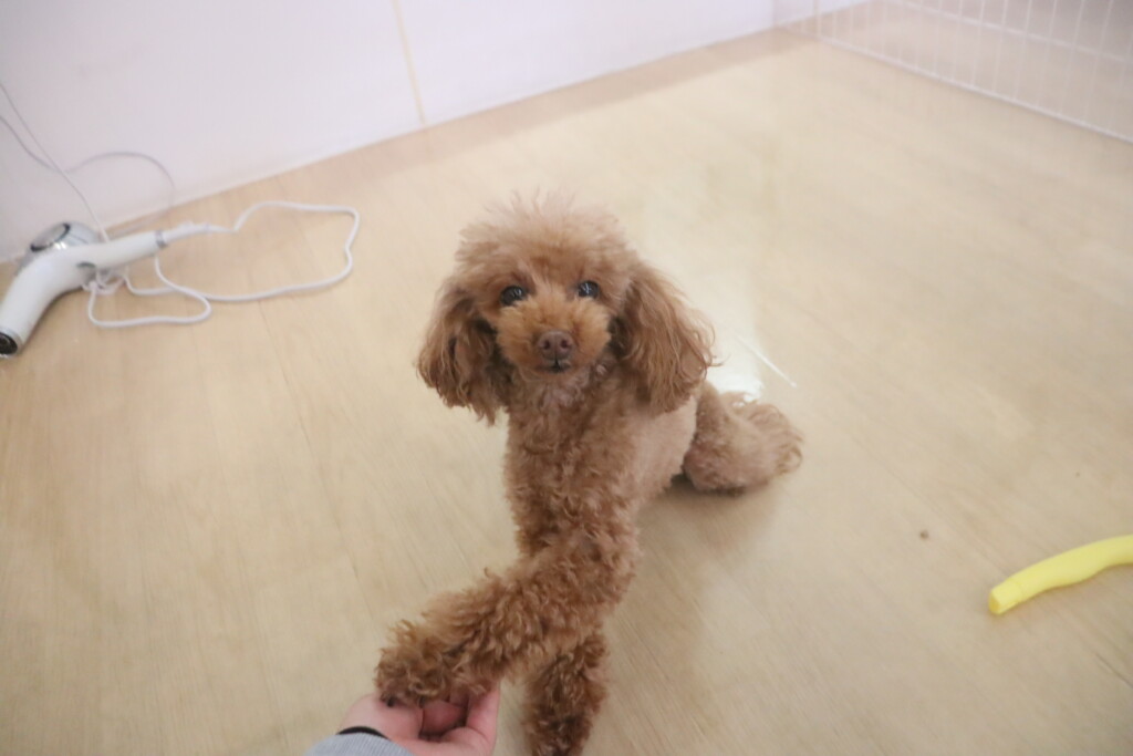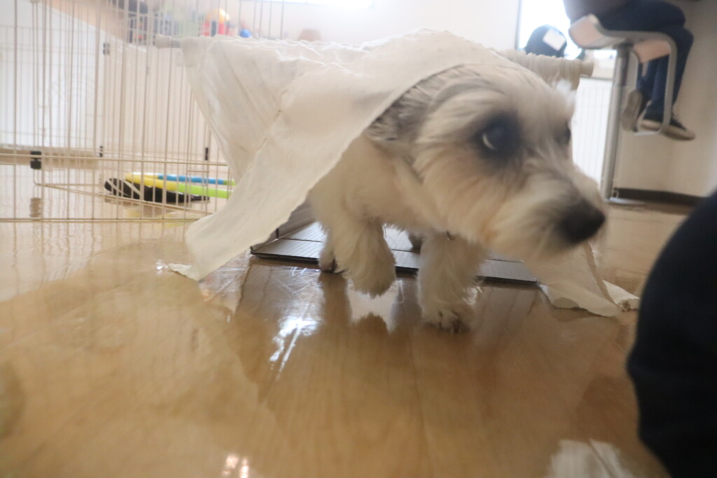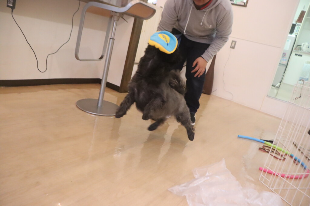 頭にくっつけると一生懸命前足で取ろうとする姿が可愛くてついつい意地悪してしまうスタッフでした😅