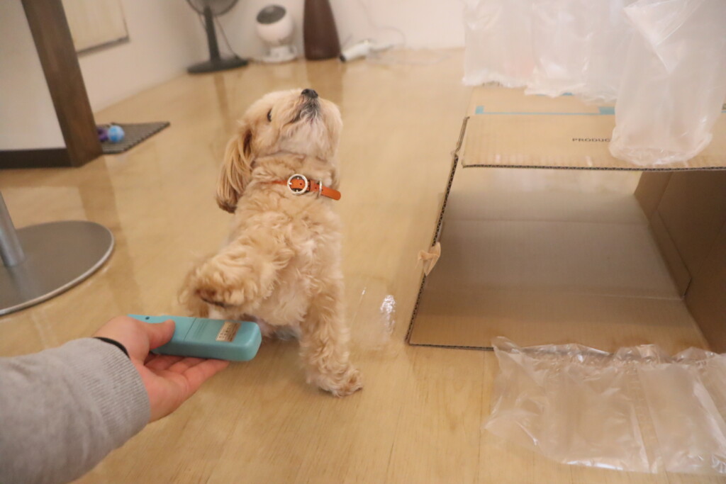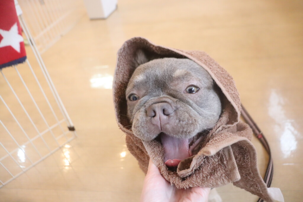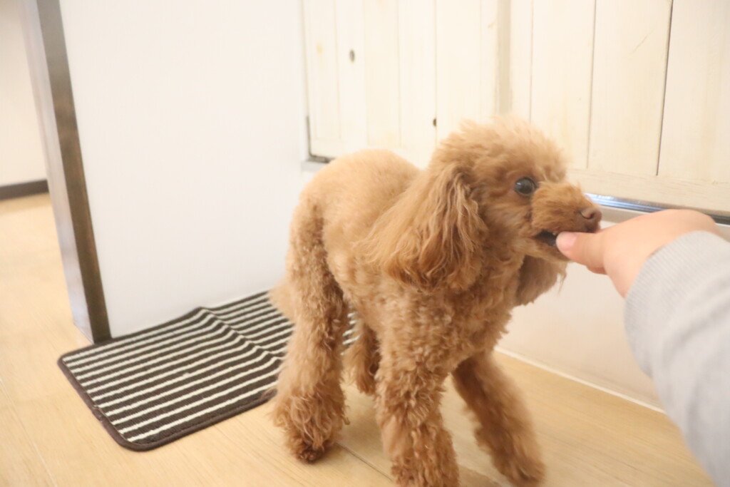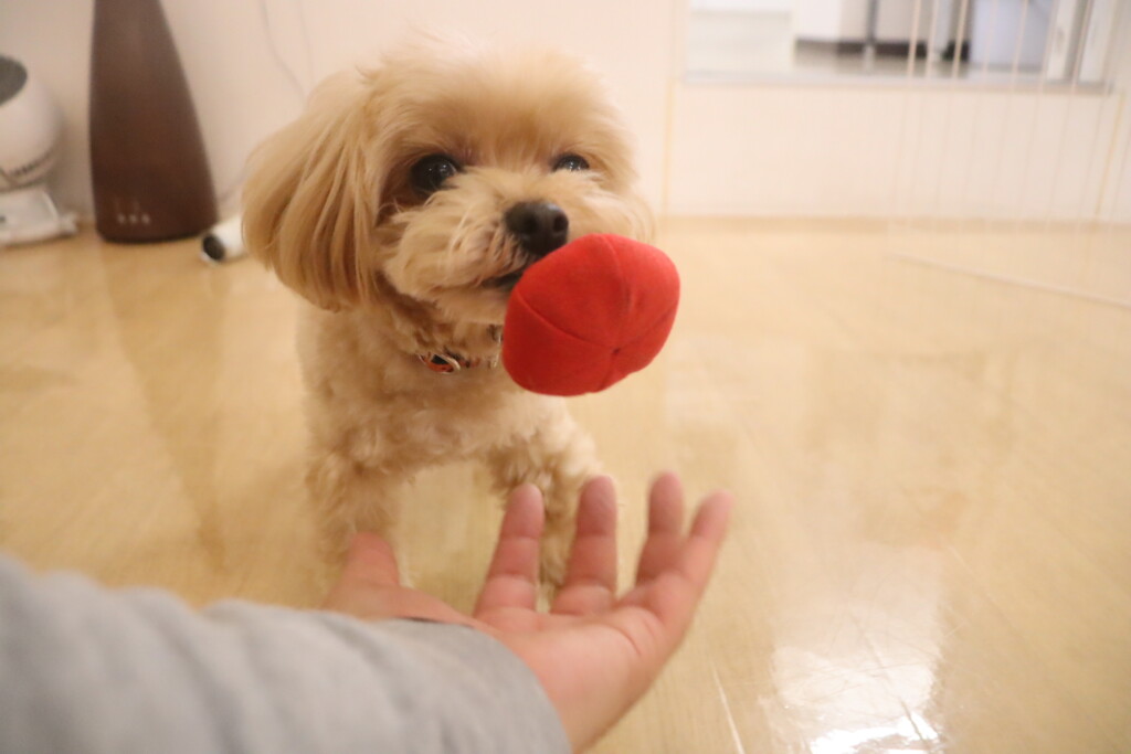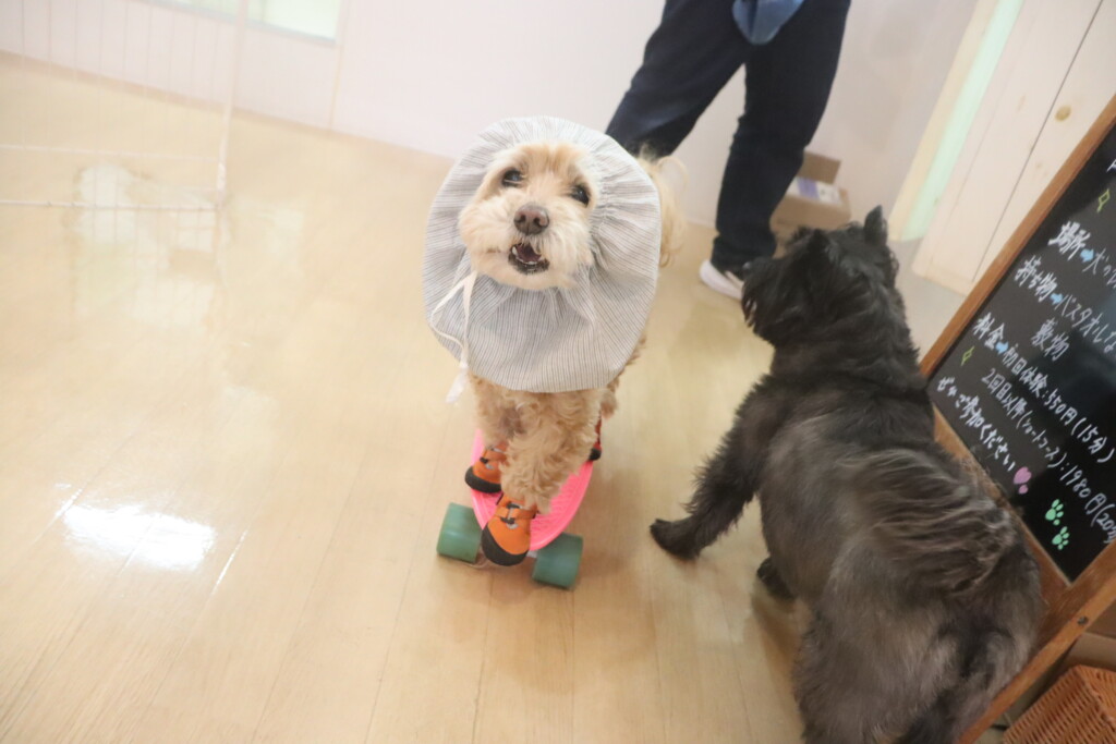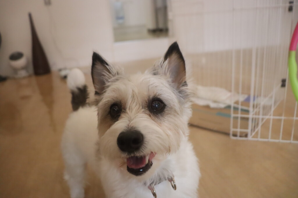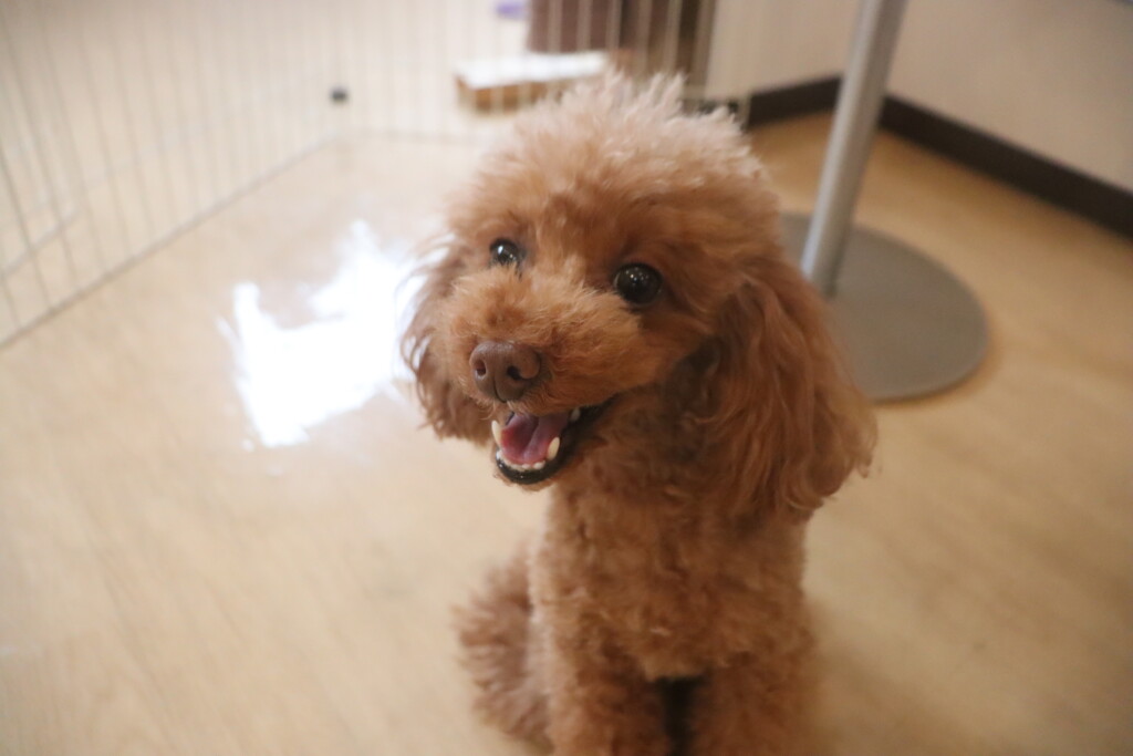 頭にくっつけると一生懸命前足で取ろうとする姿が可愛くてついつい意地悪してしまうスタッフでした😅
