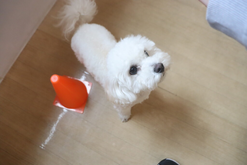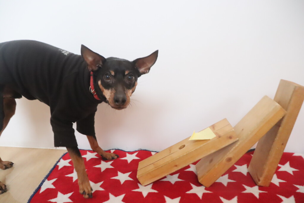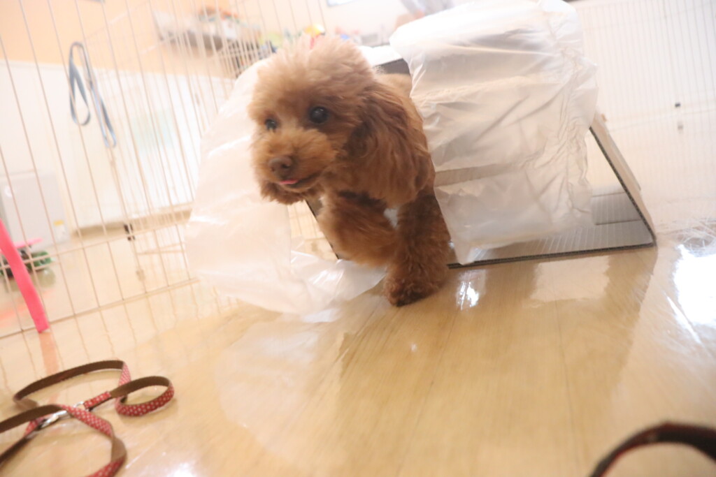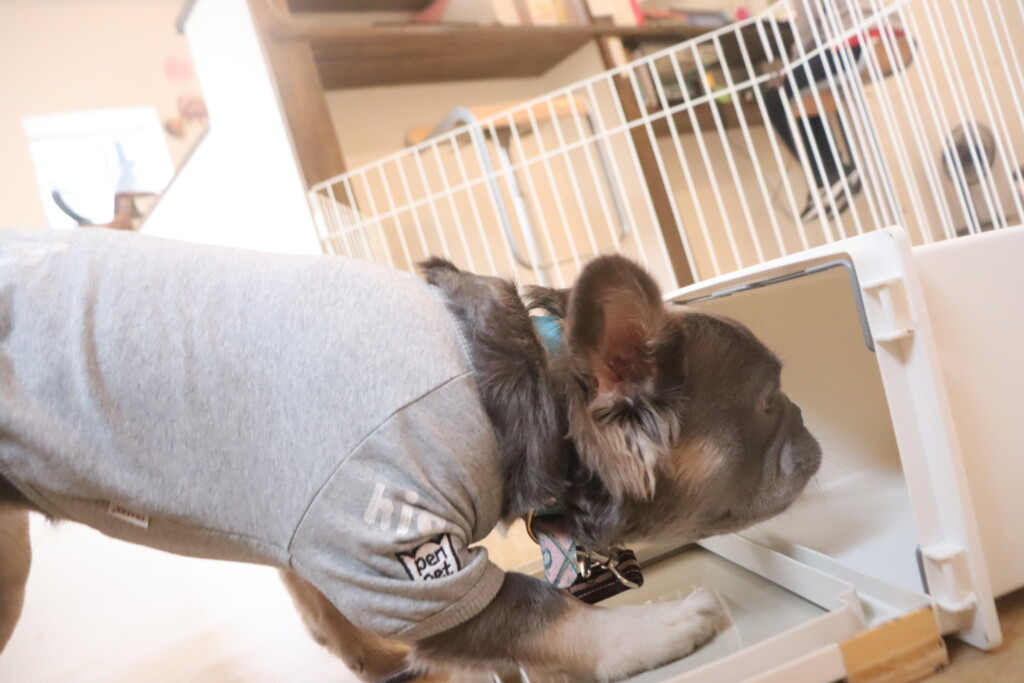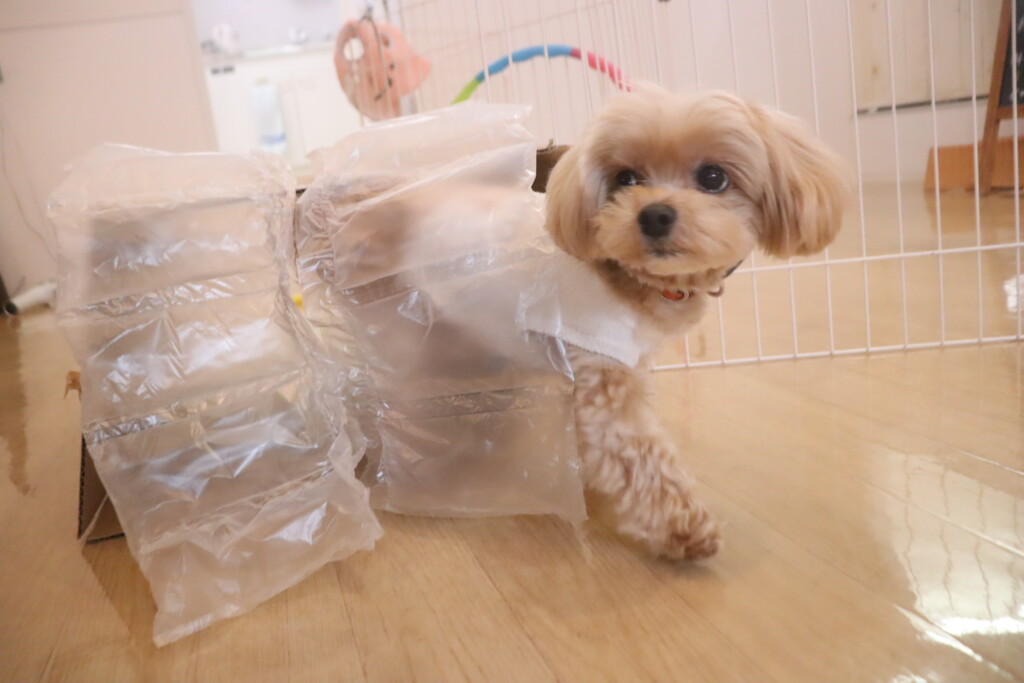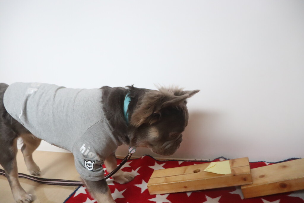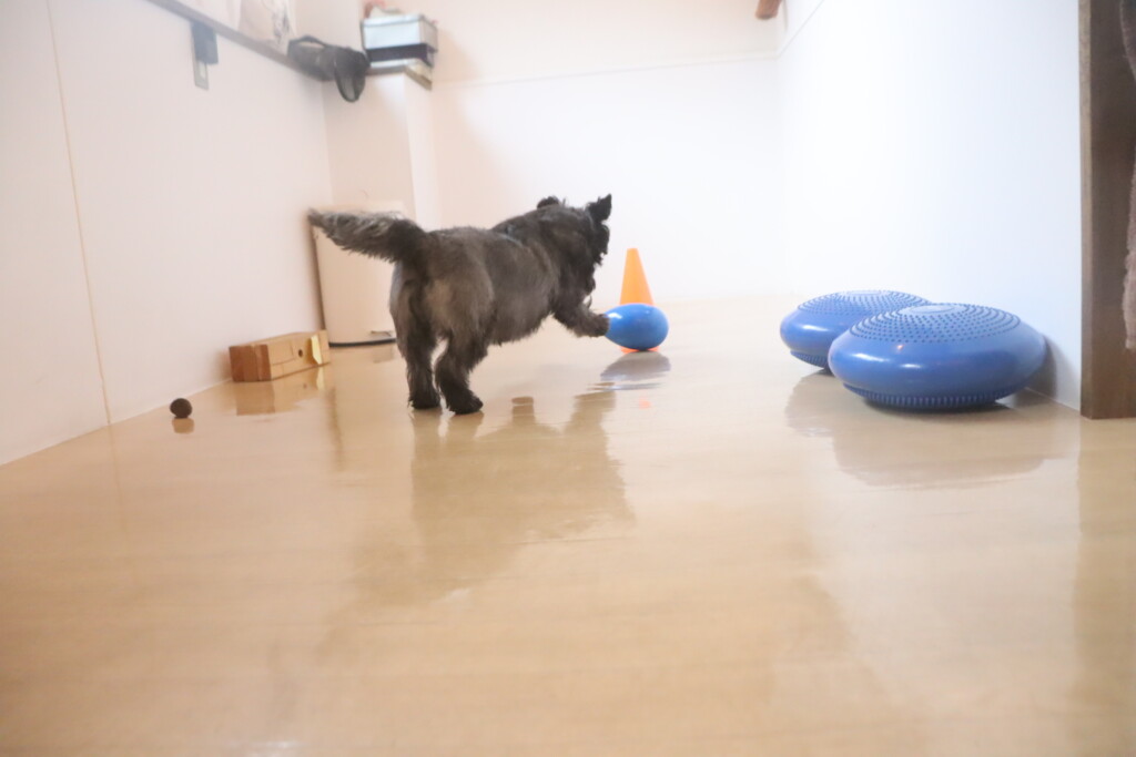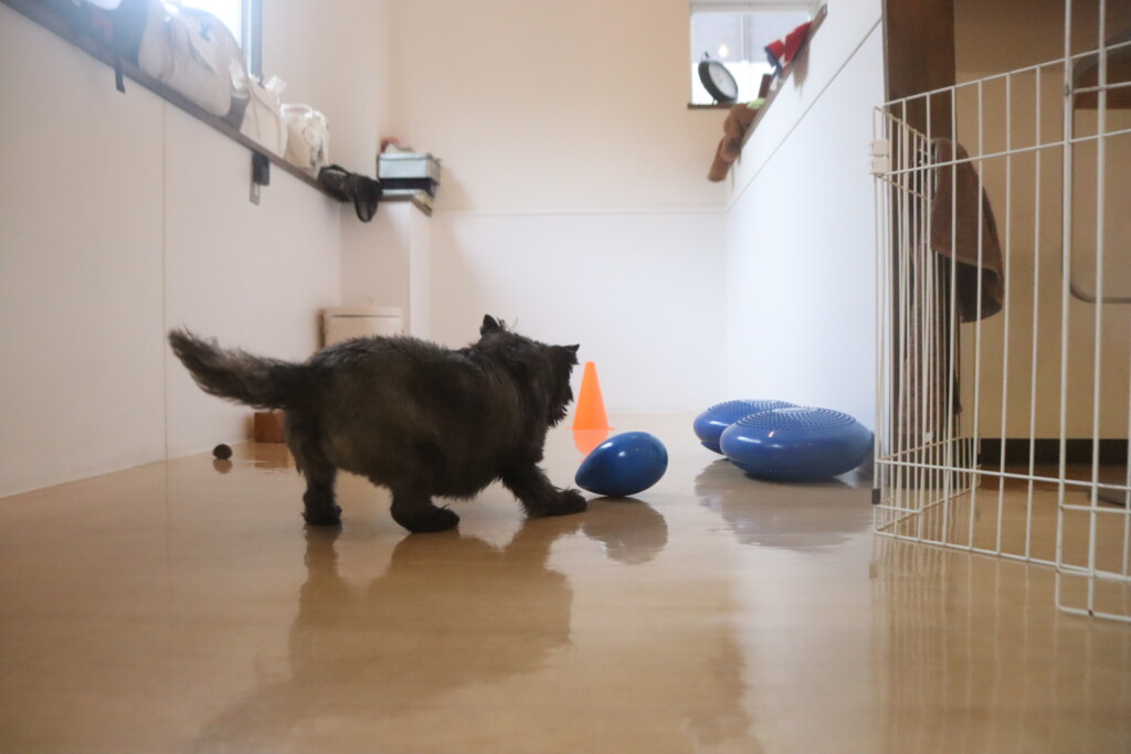 大好きな段ボールくぐりでもやはり音が鳴ると一気に緊張モードになってしまうので、得意と不得意を織り交ぜながらより慣れてもらえるよう練習を進めていきます!
