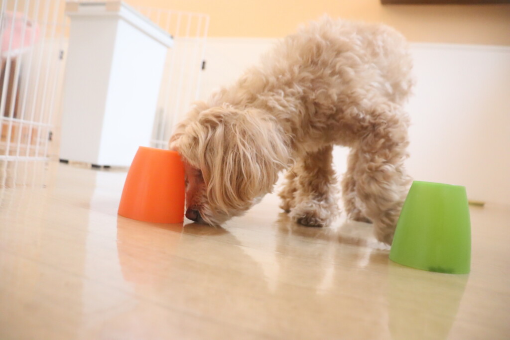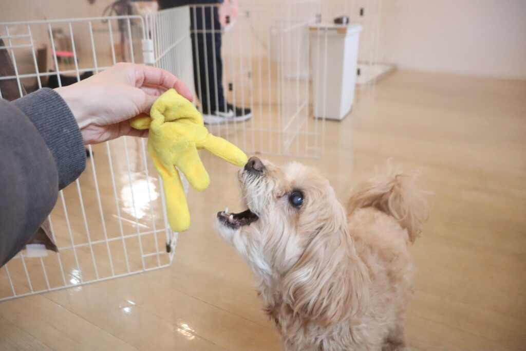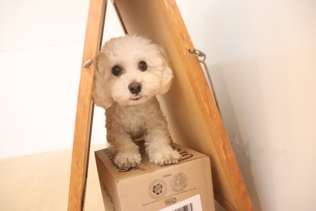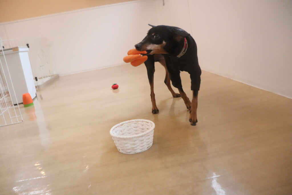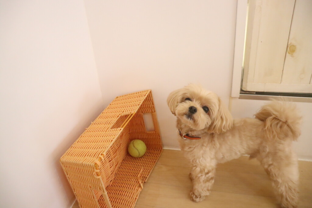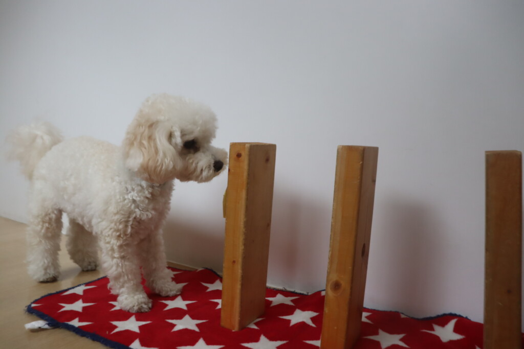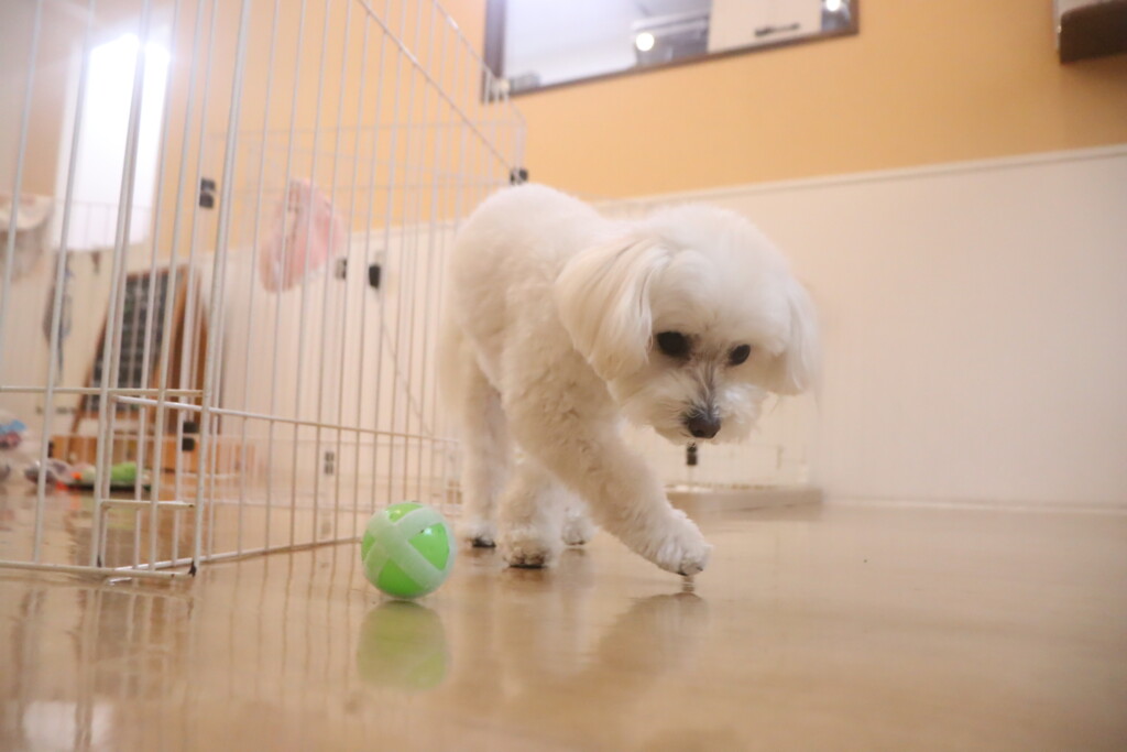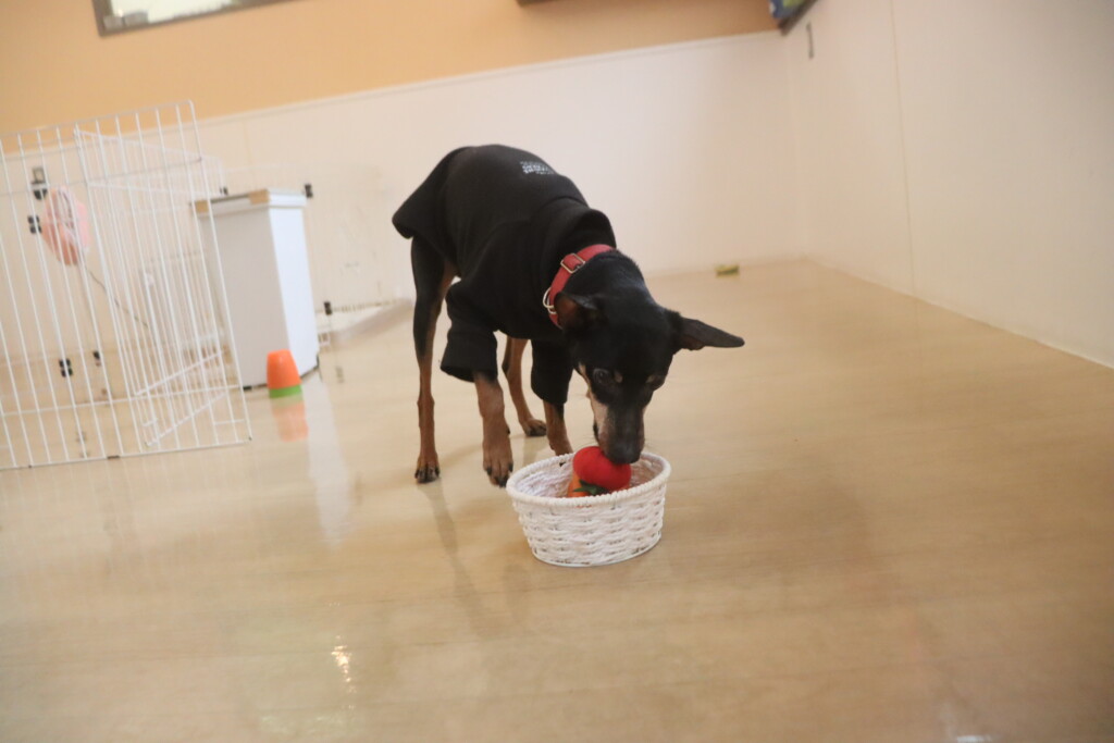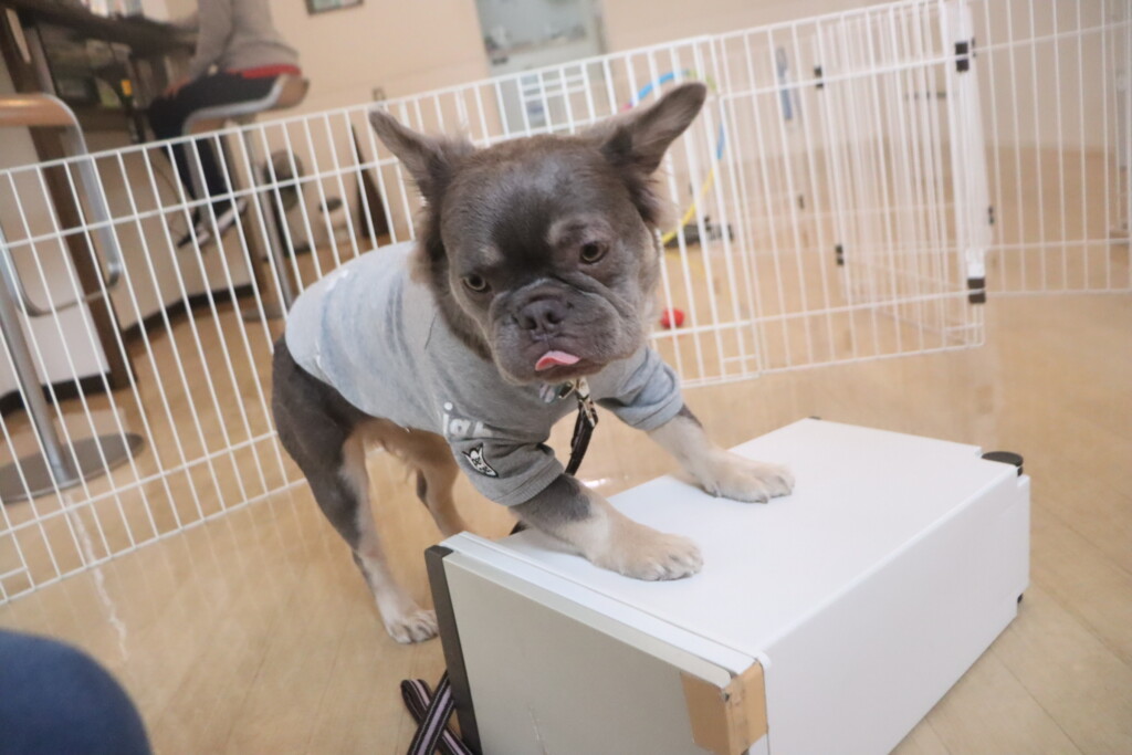大好きな段ボールくぐりでもやはり音が鳴ると一気に緊張モードになってしまうので、得意と不得意を織り交ぜながらより慣れてもらえるよう練習を進めていきます!