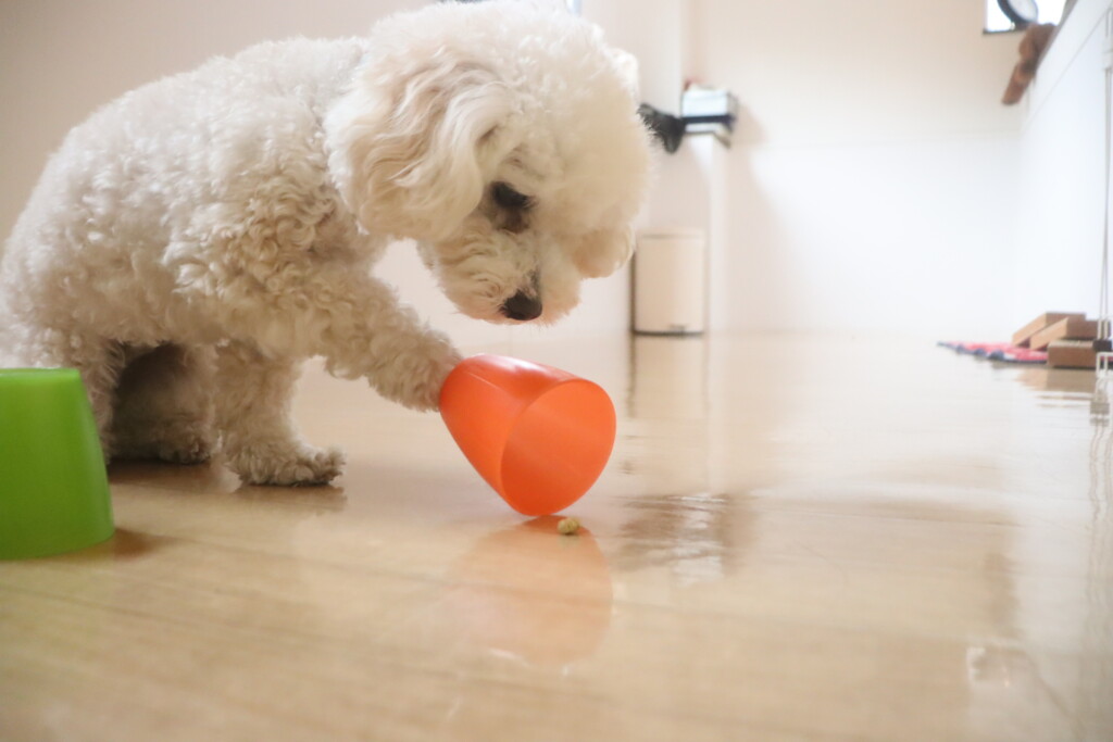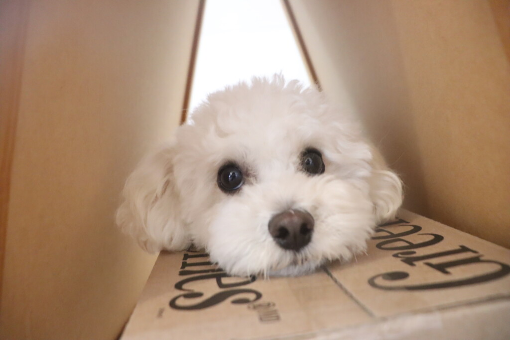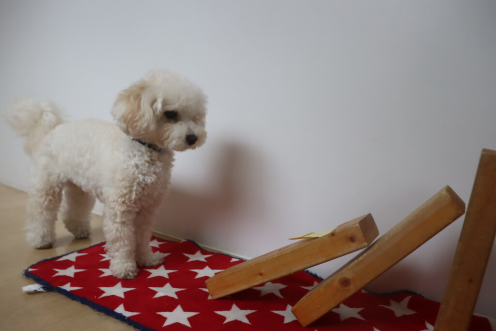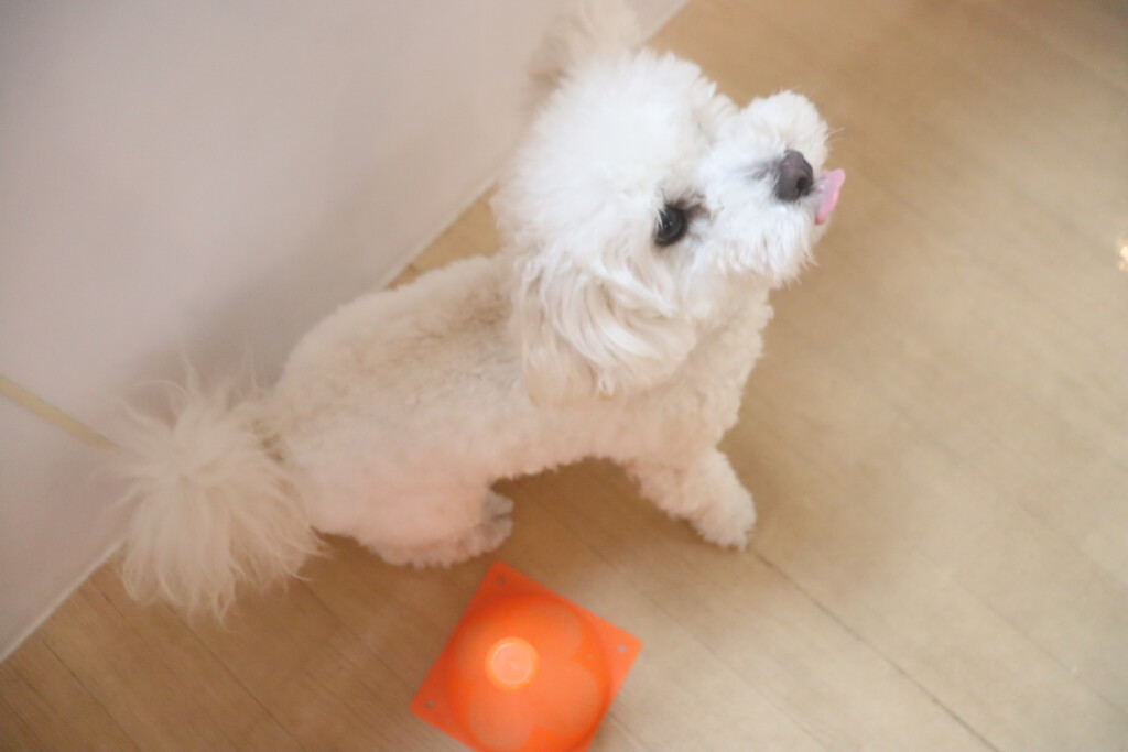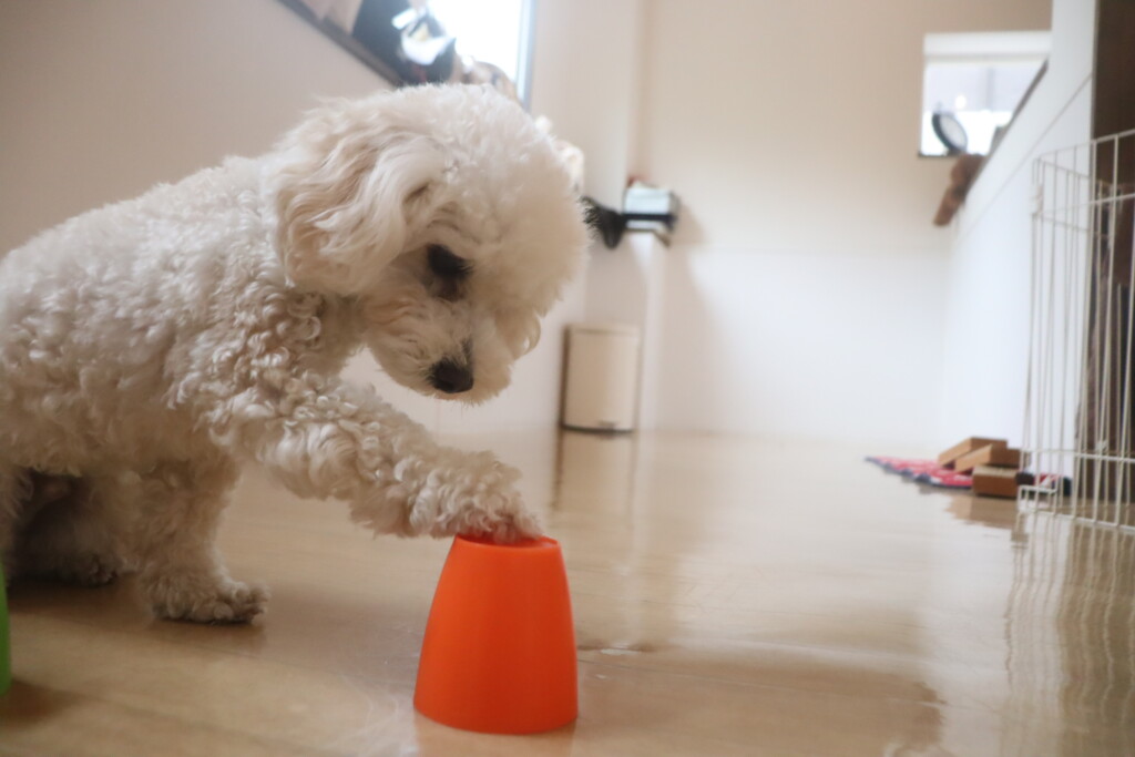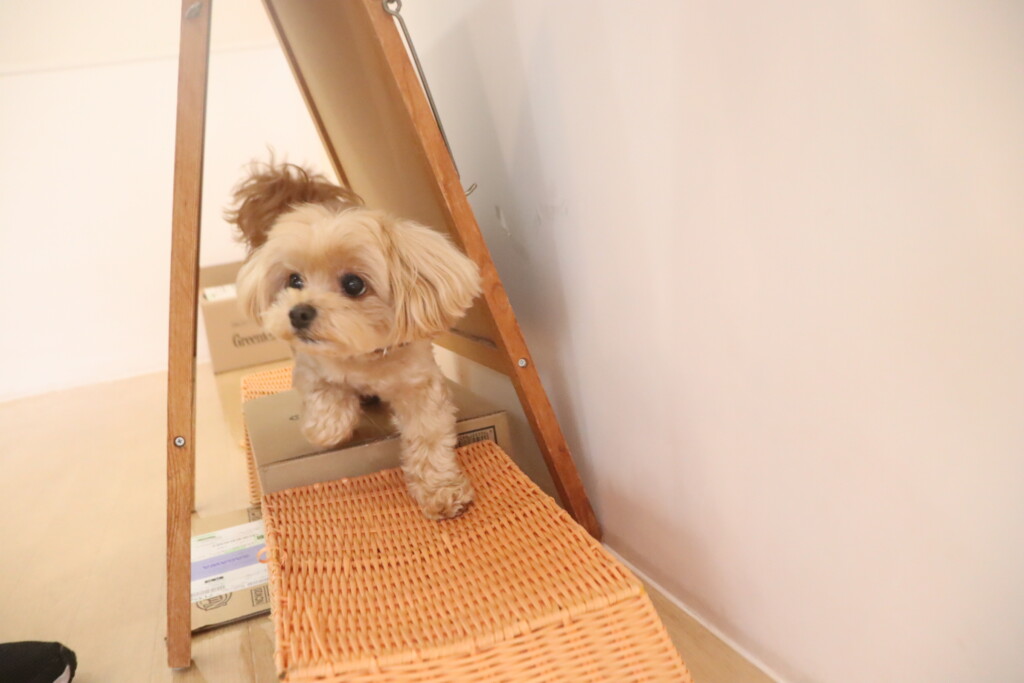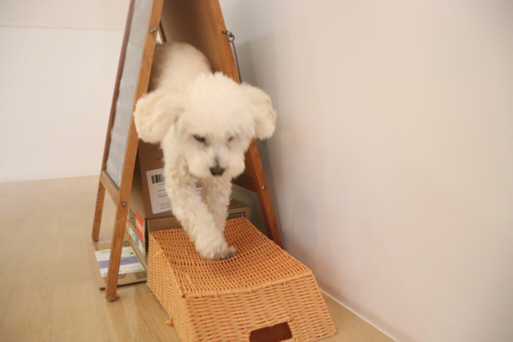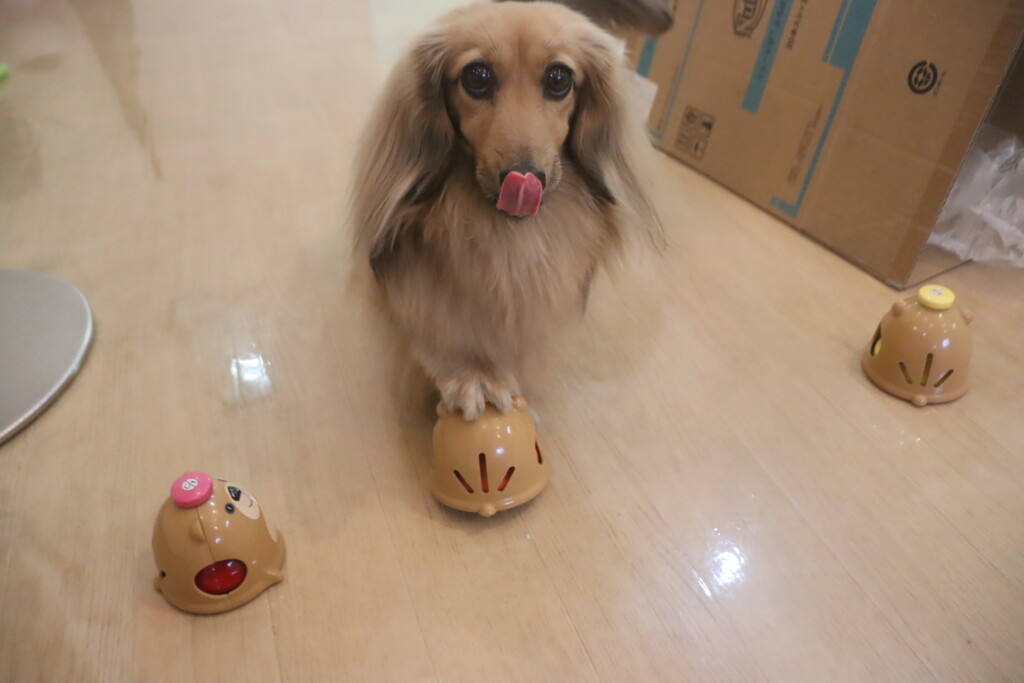 大好きな段ボールくぐりでもやはり音が鳴ると一気に緊張モードになってしまうので、得意と不得意を織り交ぜながらより慣れてもらえるよう練習を進めていきます!